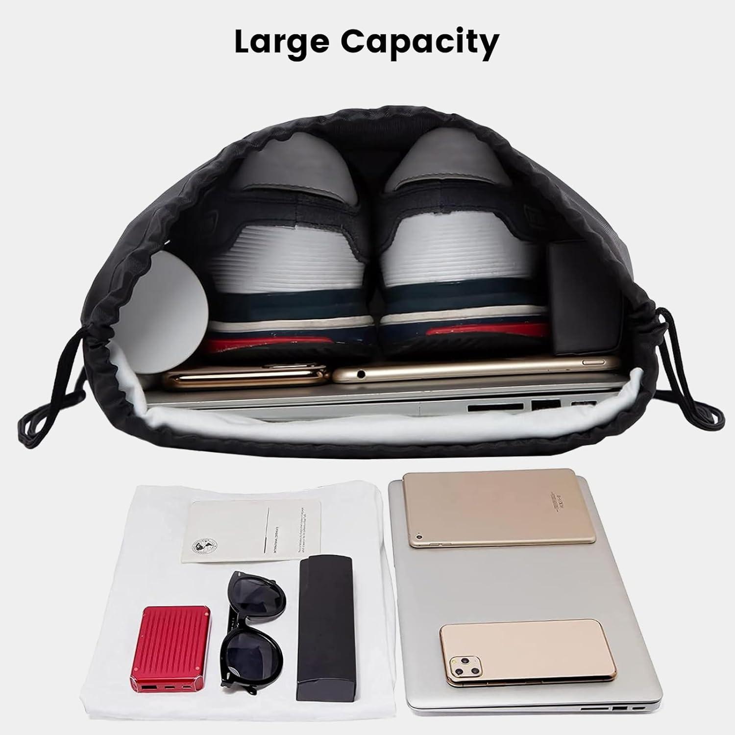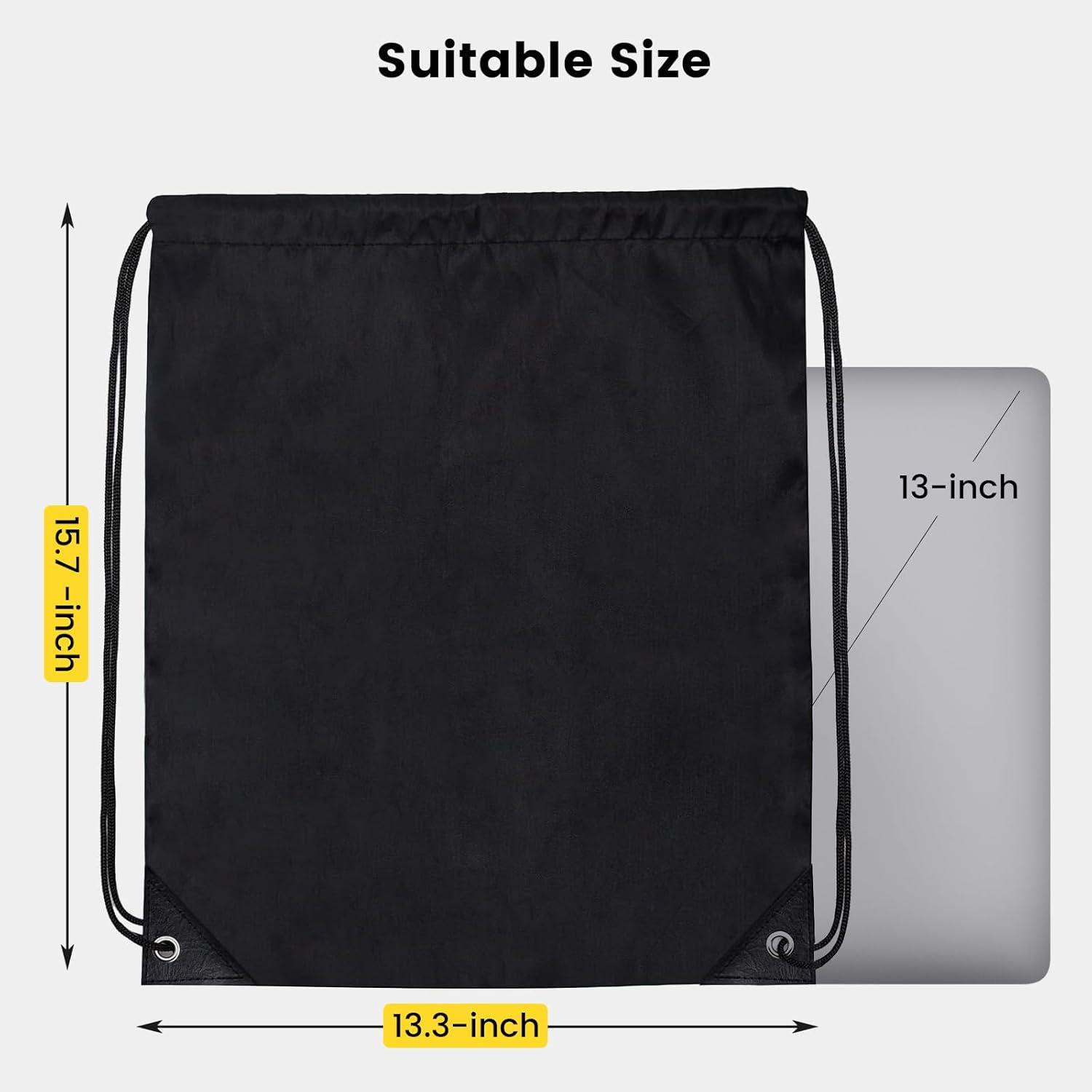 Large Capacity: size 13.3 x 15.7 inches.Our draw string bag has enough space for water bottles, shoes, towels, books, and various snacks. But it's lightweight and will not increase your burden
