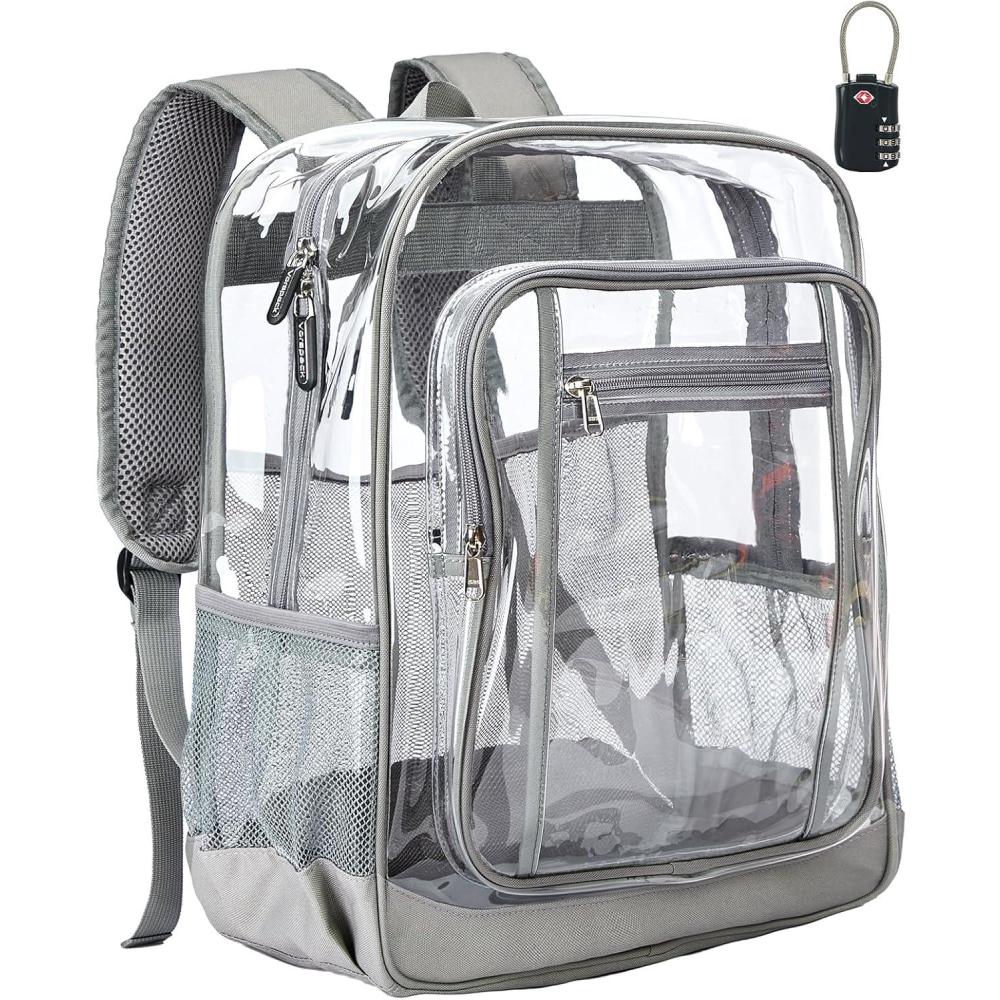 Vorspack Clear Backpack Heavy Duty – Extra Large Clear Backpacks with TSA Lock Transparent See Through Bookbag for School, Work, College, Travel – Black(Grey)