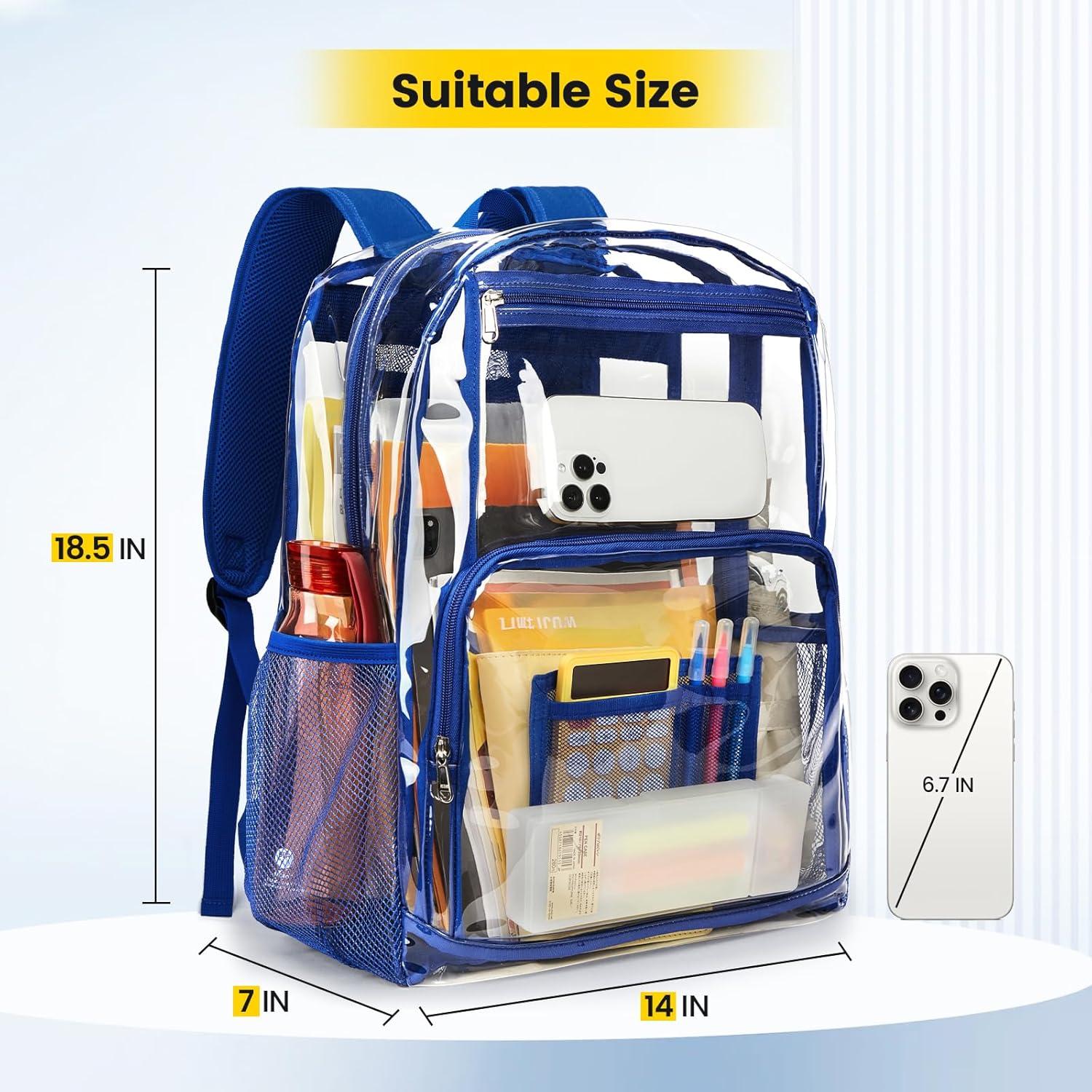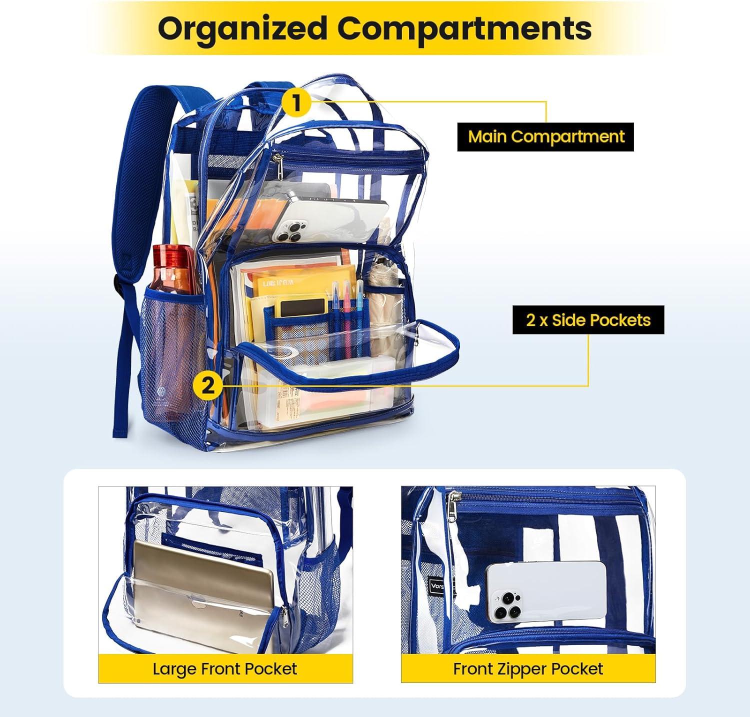 Vorspack Clear Backpack Heavy Duty – Large Transparent Bookbag for Adults, See Through Backpack for College, Work, Travel – Black(Blue)