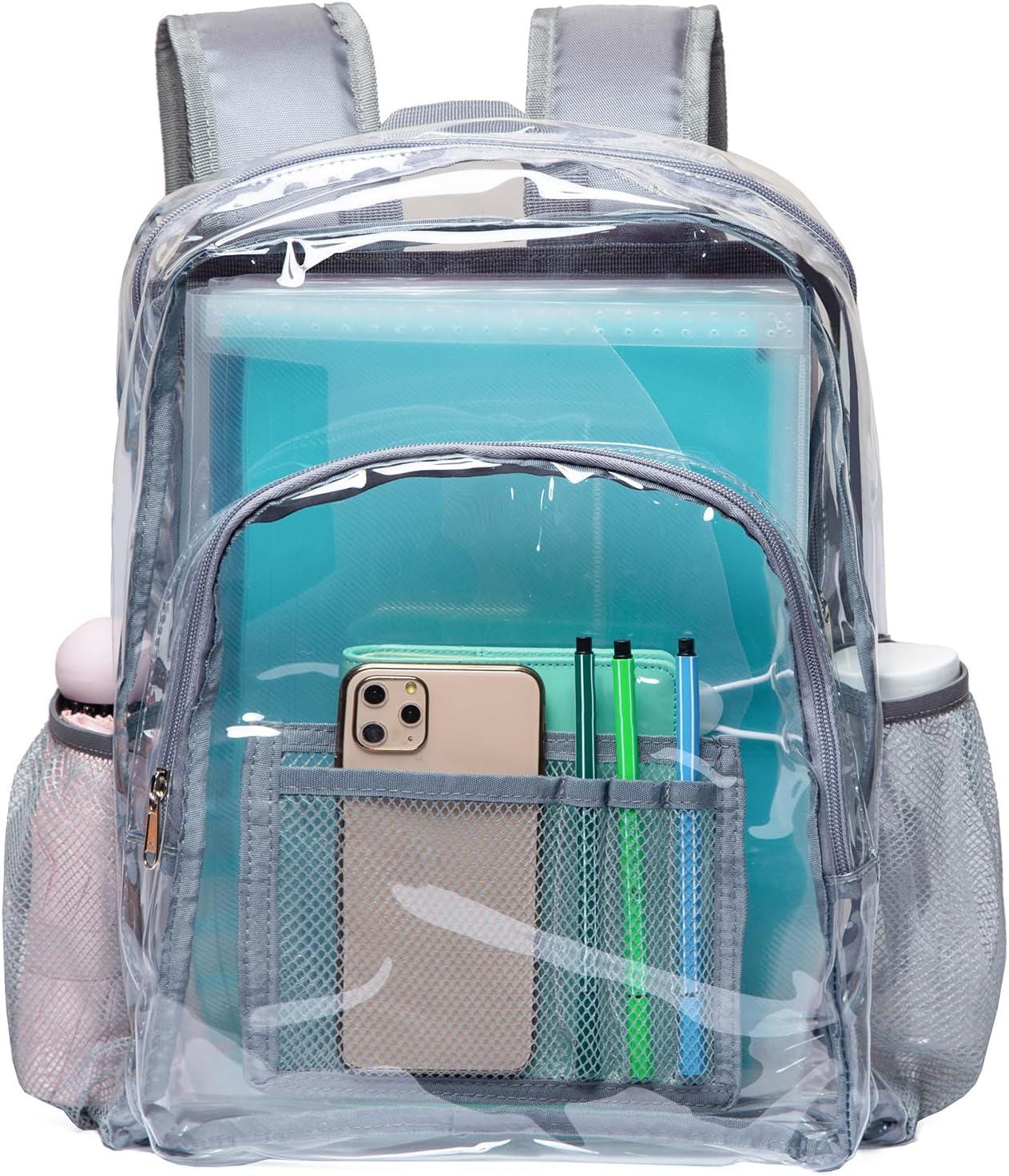 Vorspack Clear Backpack Heavy Duty PVC Transparent Backpack with Reinforced Strap for College Workplace – Black(Grey)