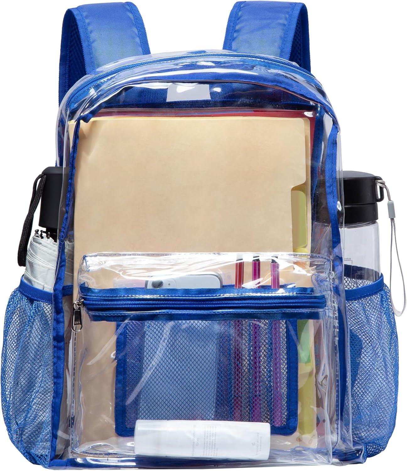 Vorspack Clear Backpack Heavy Duty PVC Transparent Backpack with Reinforced Strap for College Workplace(Blue)