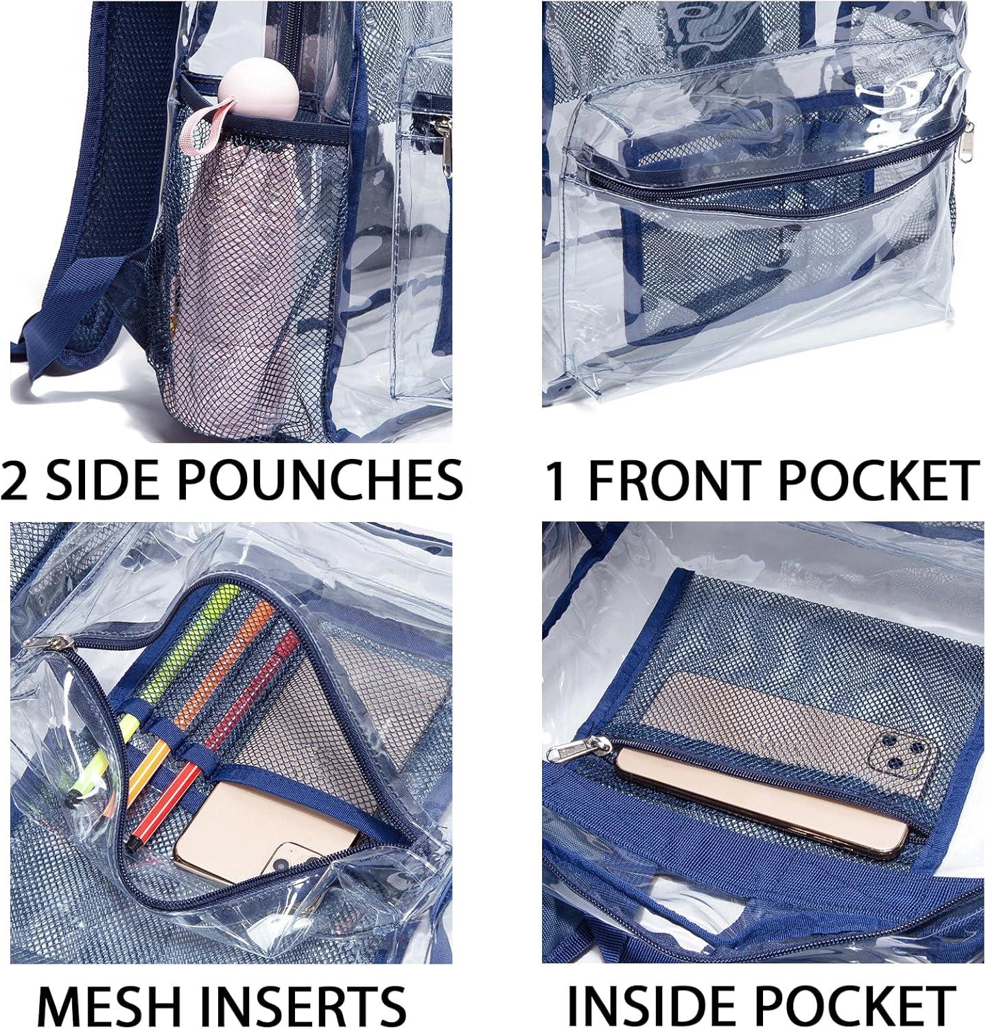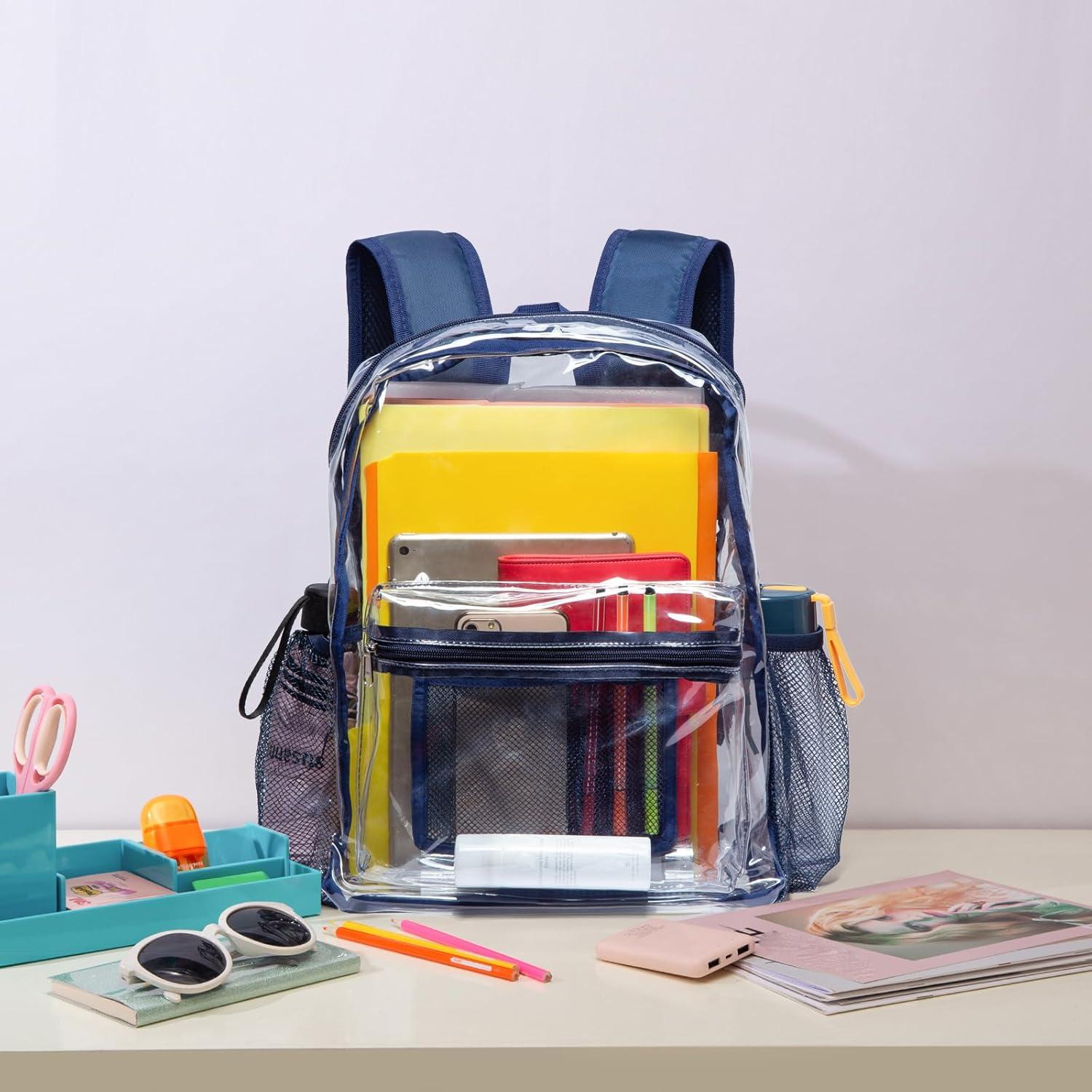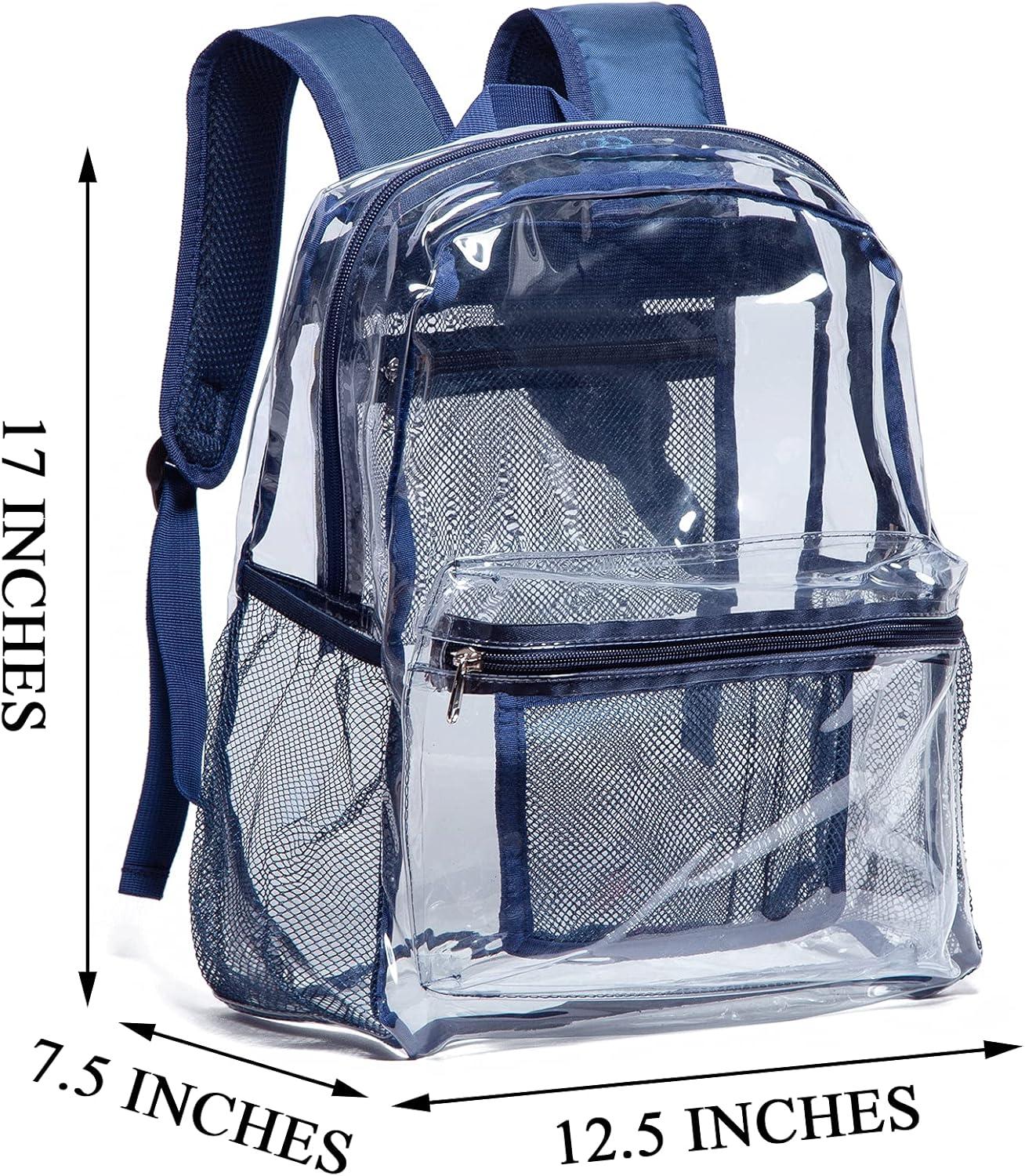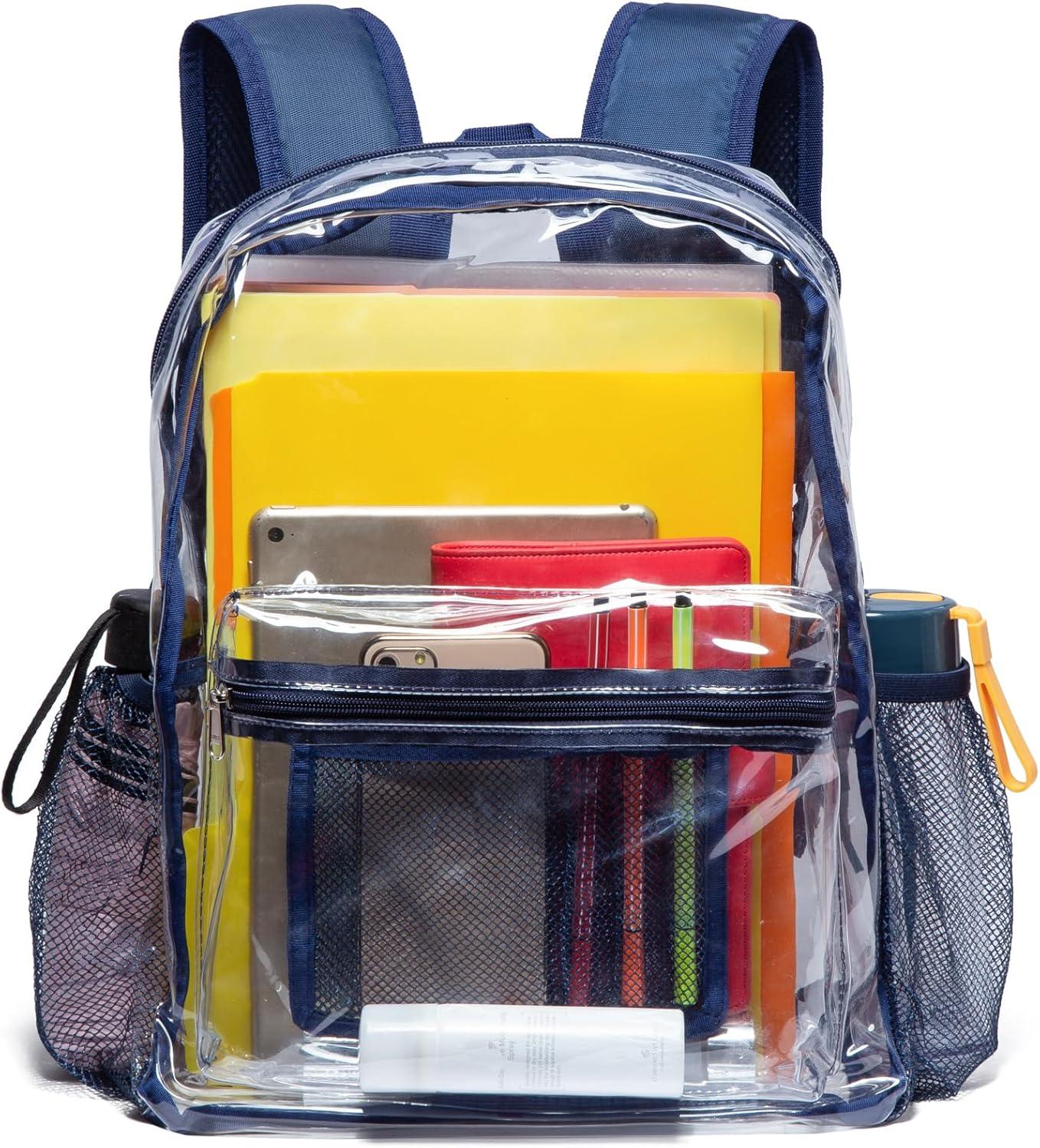 Vorspack Clear Backpack Heavy Duty PVC Transparent Backpack with Reinforced Strap for College Workplace(Navy Blue)