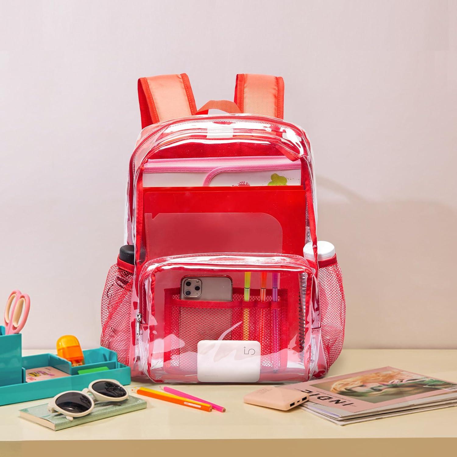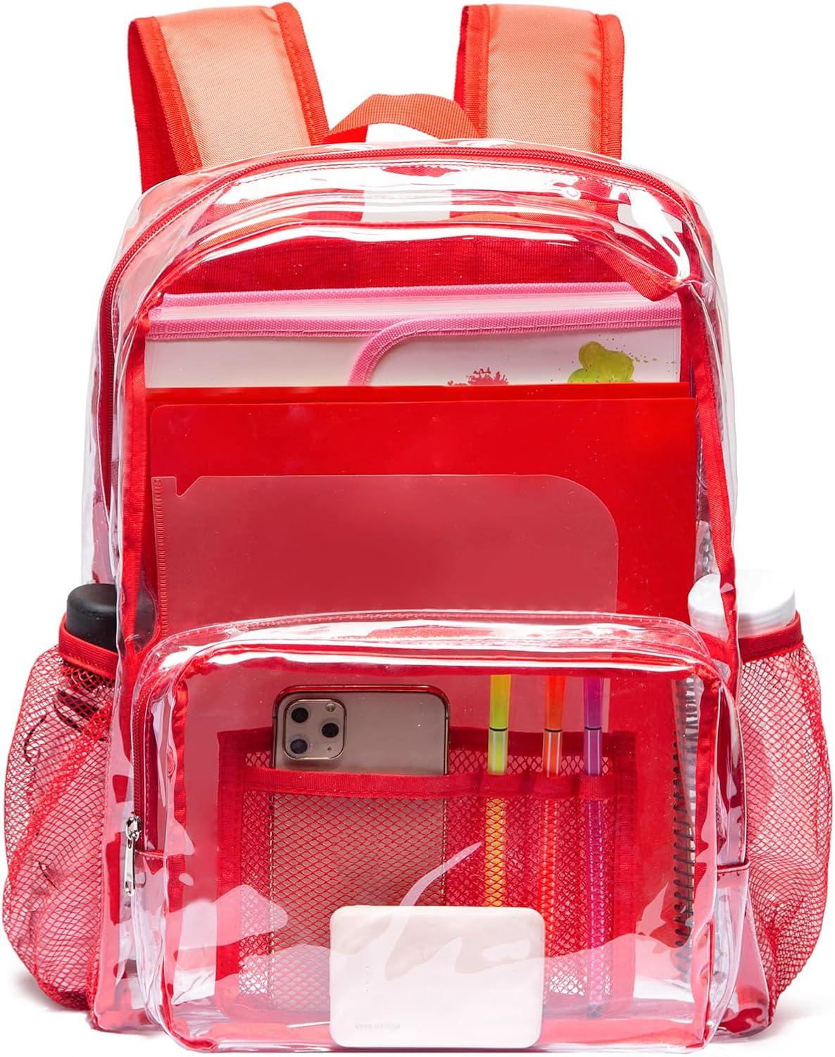 Vorspack Clear Backpack – Heavy Duty PVC Transparent See Through Backpack for College & Workplace(Red)