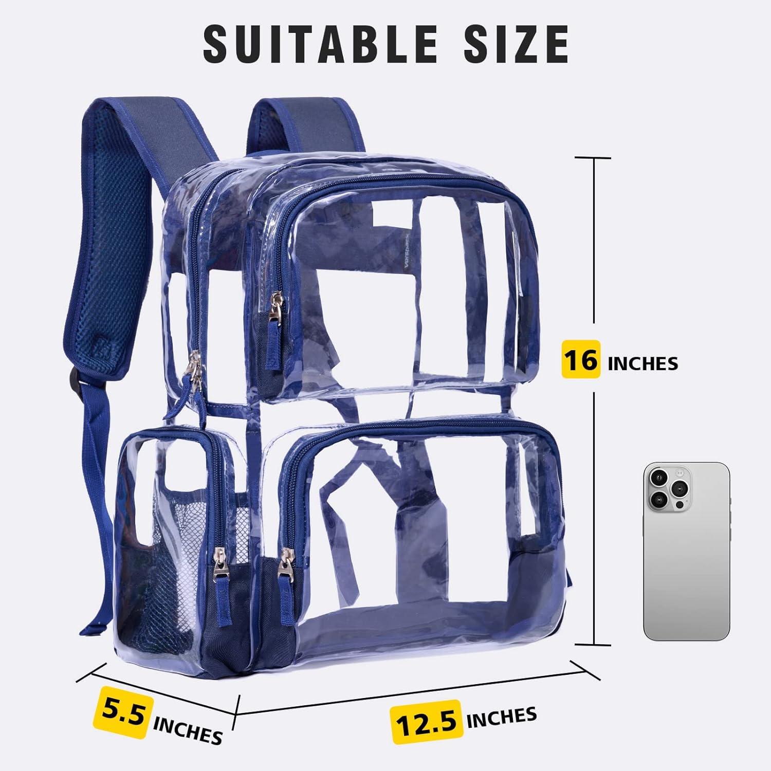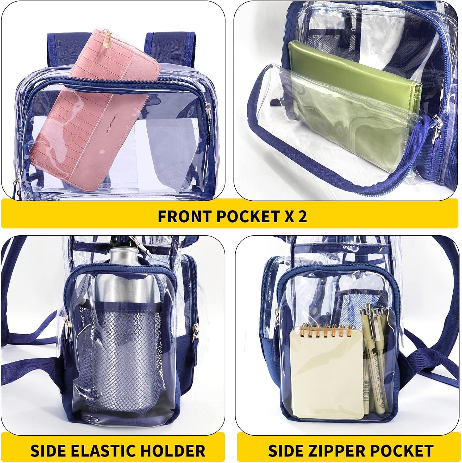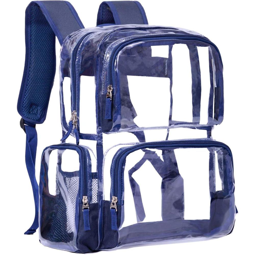 Vorspack Clear Backpack – Transparent Backpack with Reinforced Bottom & Multi-pockets for College Workplace Security – Black(Navy Blue)