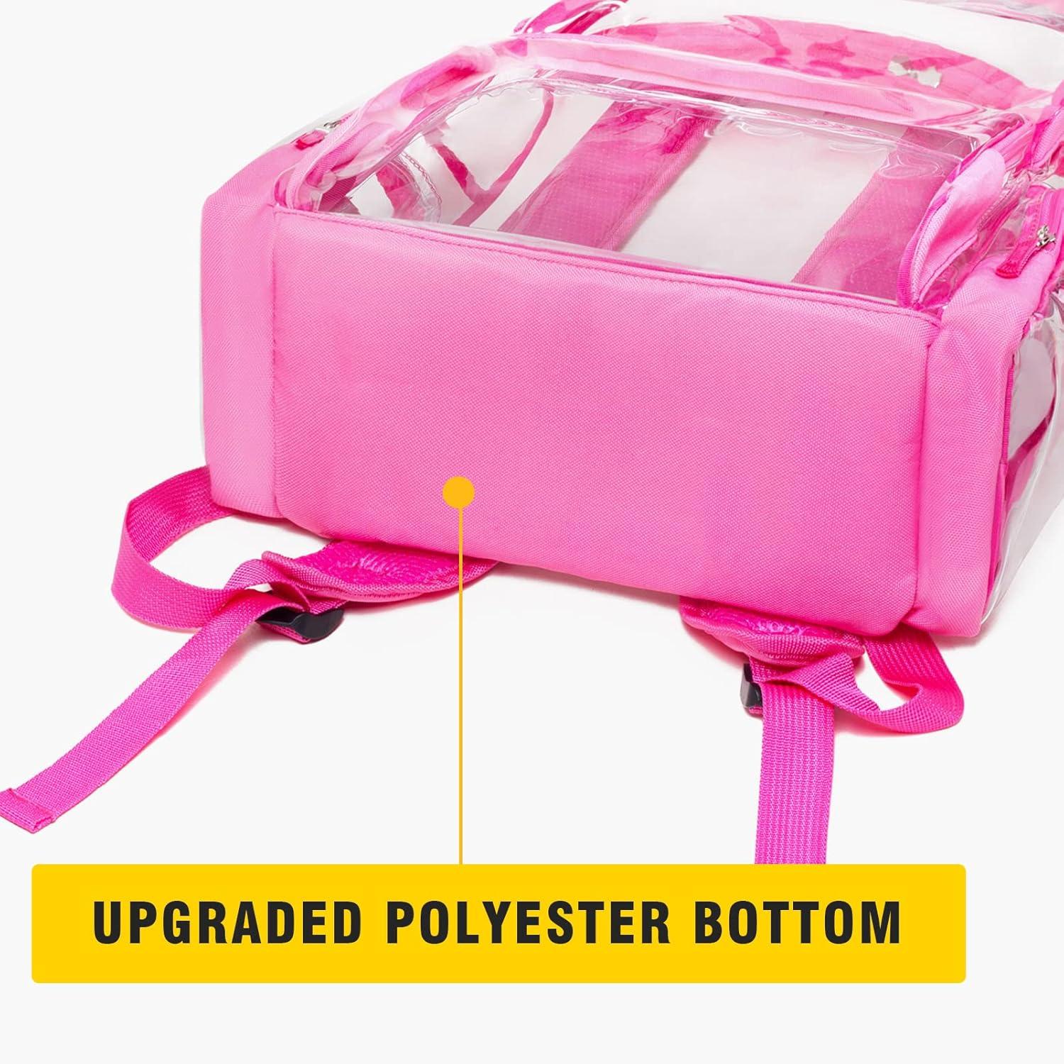 Vorspack Clear Backpack – Transparent Backpack with Reinforced Bottom & Multi-pockets for College Workplace Security – Black(Pink)