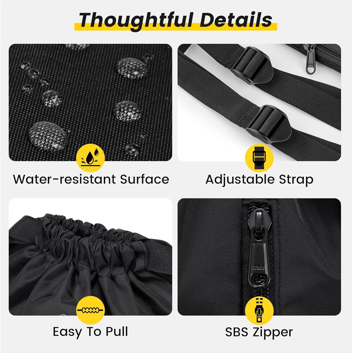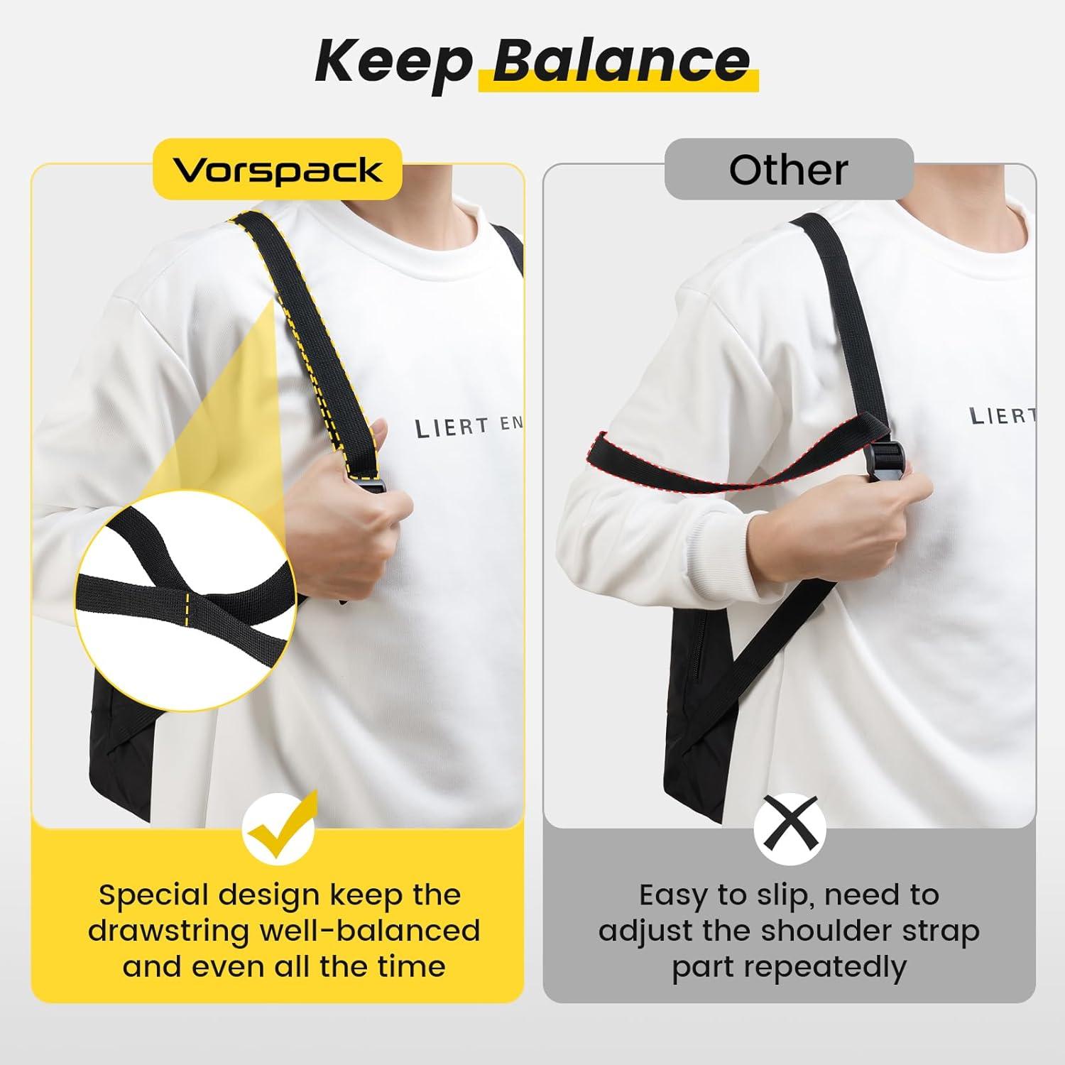 Vorspack Drawstring Backpack Water Resistant String Bag Sports Gym Sack with Side Pocket for Men Women(01-black)