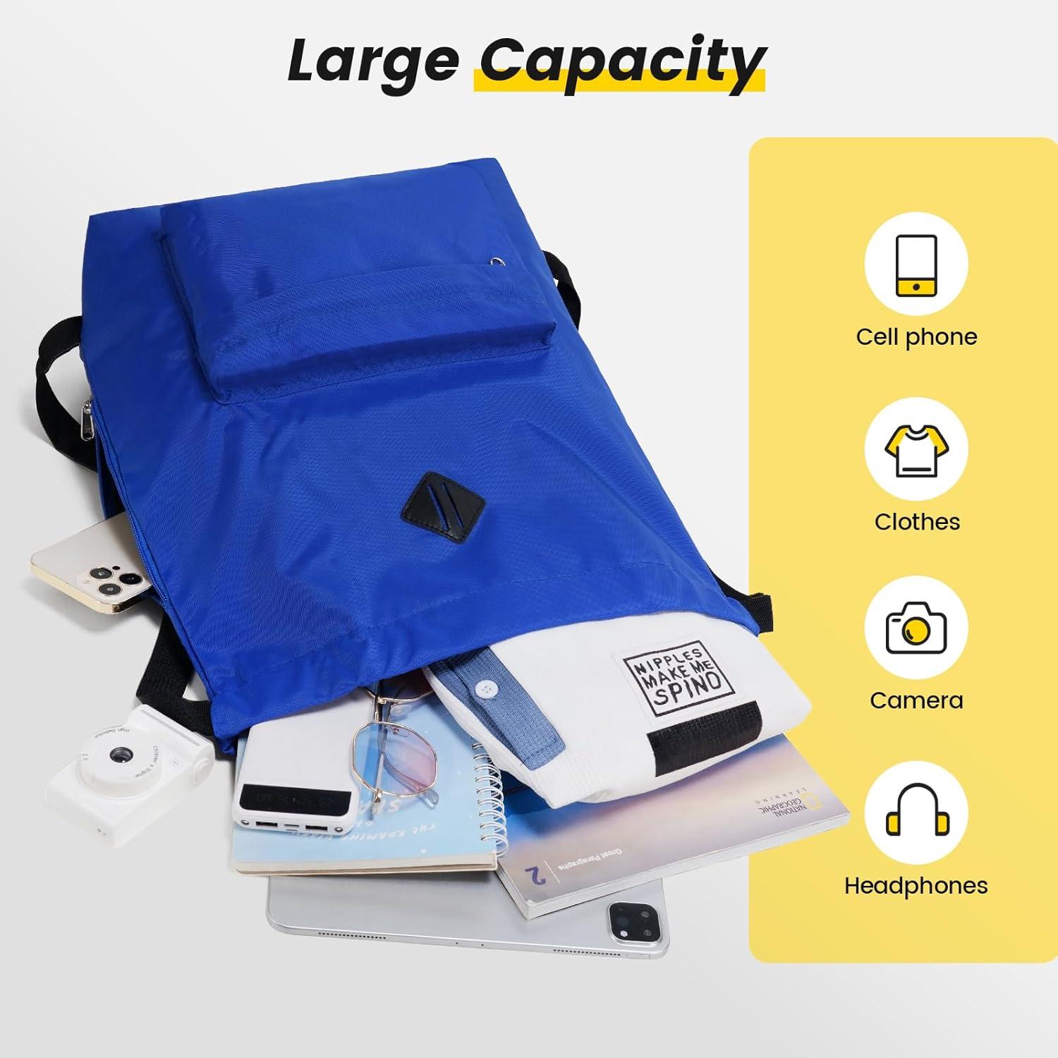 Vorspack Drawstring Backpack Water Resistant String Bag Sports Gym Sack with Side Pocket for Men Women(Blue)