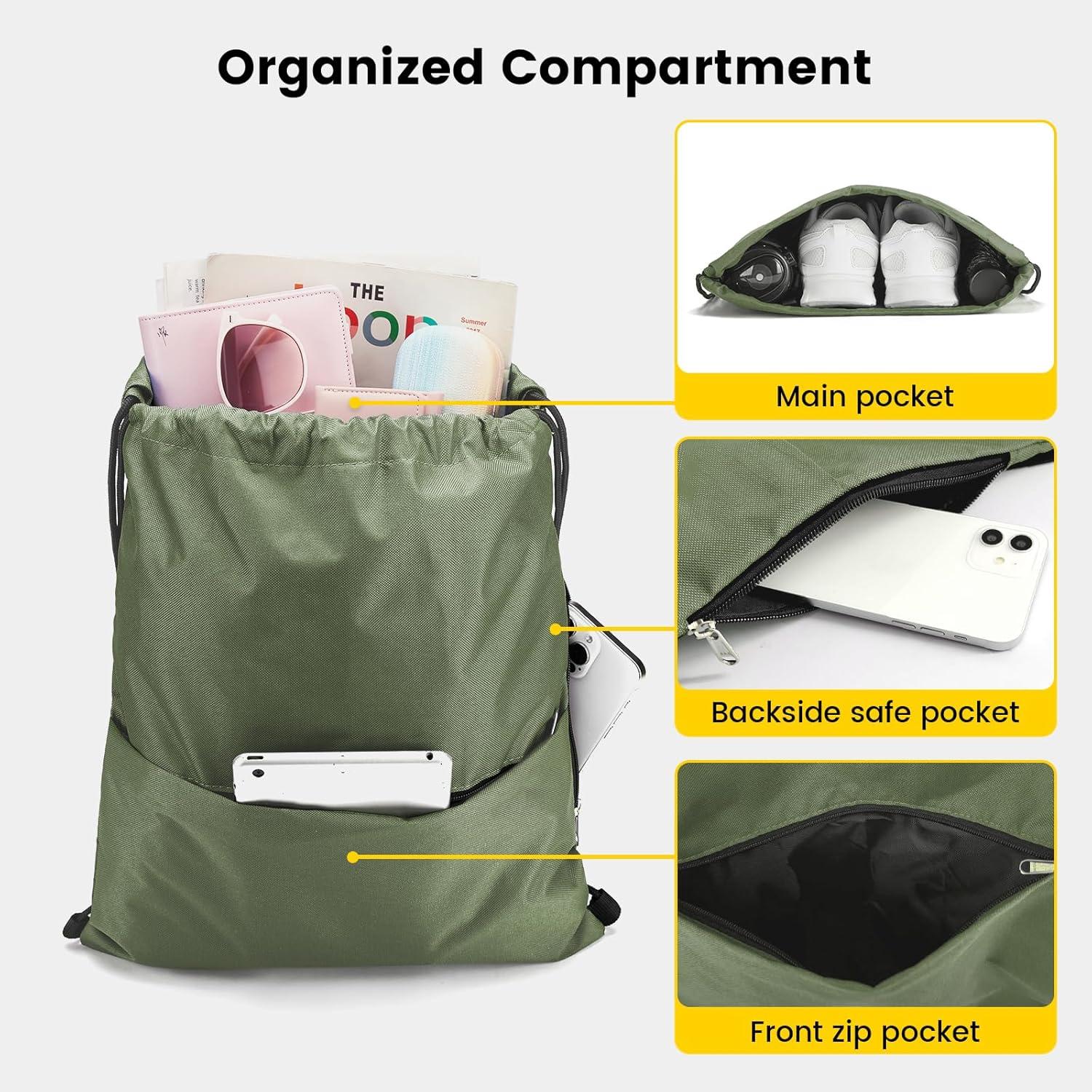 Vorspack Drawstring Backpack Water Resistant String Bag Sports Sackpack Gym Sack with Side Pocket for Men Women(Green)