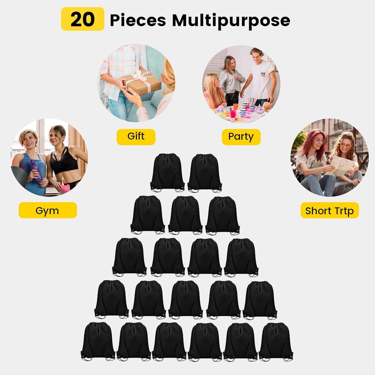 Vorspack Drawstring Backpacks Bulk 20 Pieces String Bags Customized Bags for Party Gym Sport Trip – Black(Black)