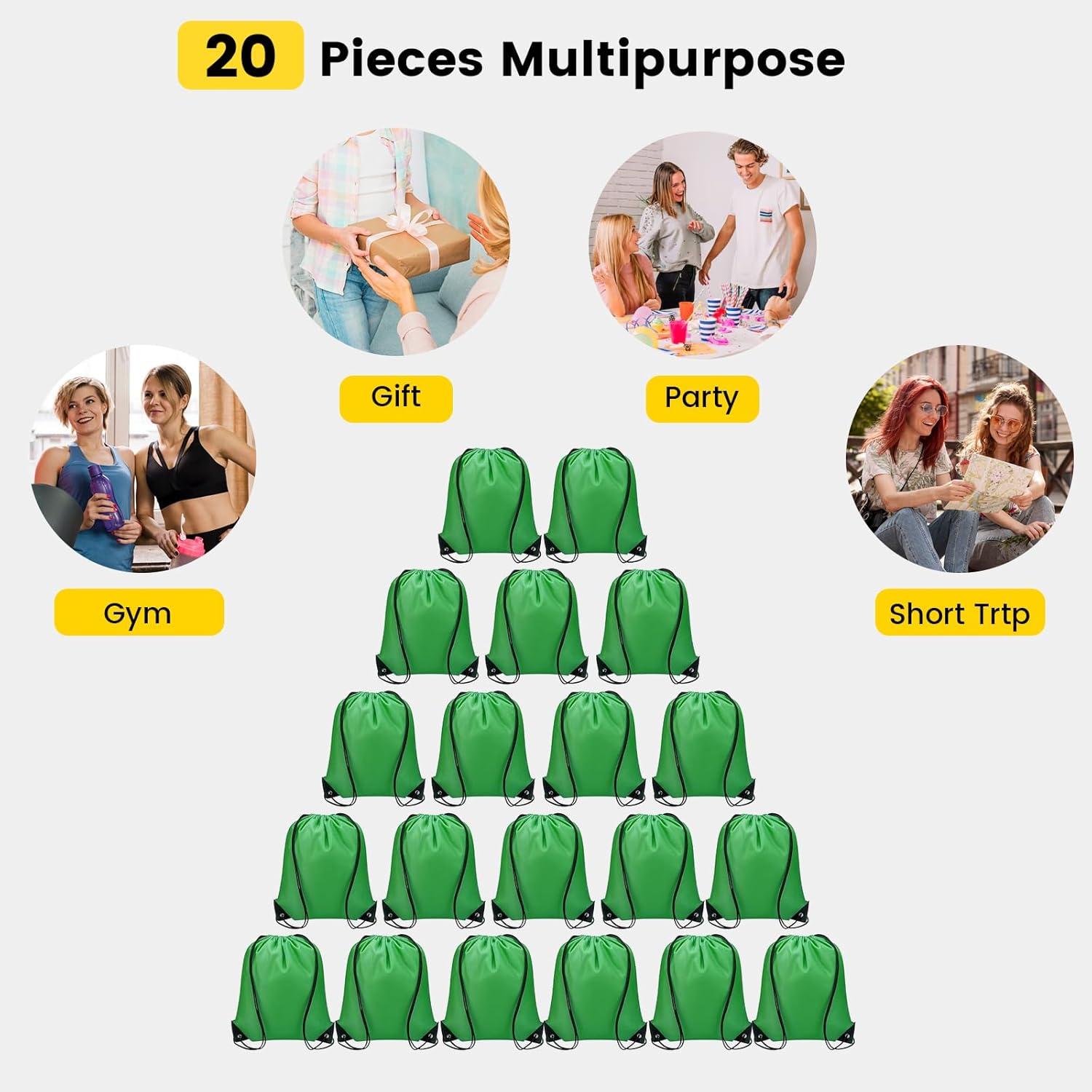Vorspack Drawstring Backpacks Bulk 20 Pieces String Bags Customized Bags for Party Gym Sport Trip – Black(Green)