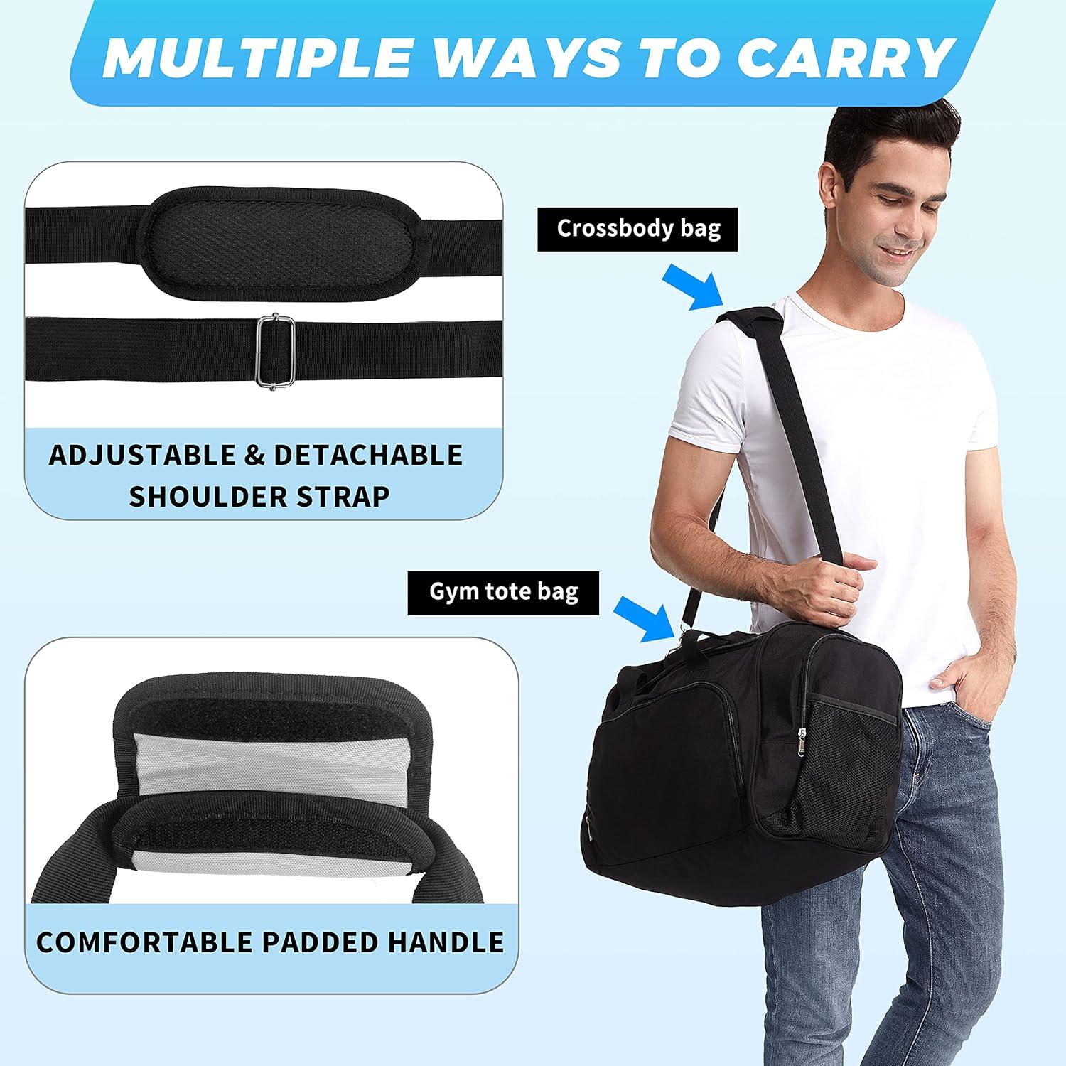 Multi-purpose duffel bag: the gym tote bag can carry all your gym and travel essentials or person items, it also can be used as a workout bag, sports bag, dance bag, overnight bag, carry on bag, personal item bag, garment bag, yoga bag, weekender bag