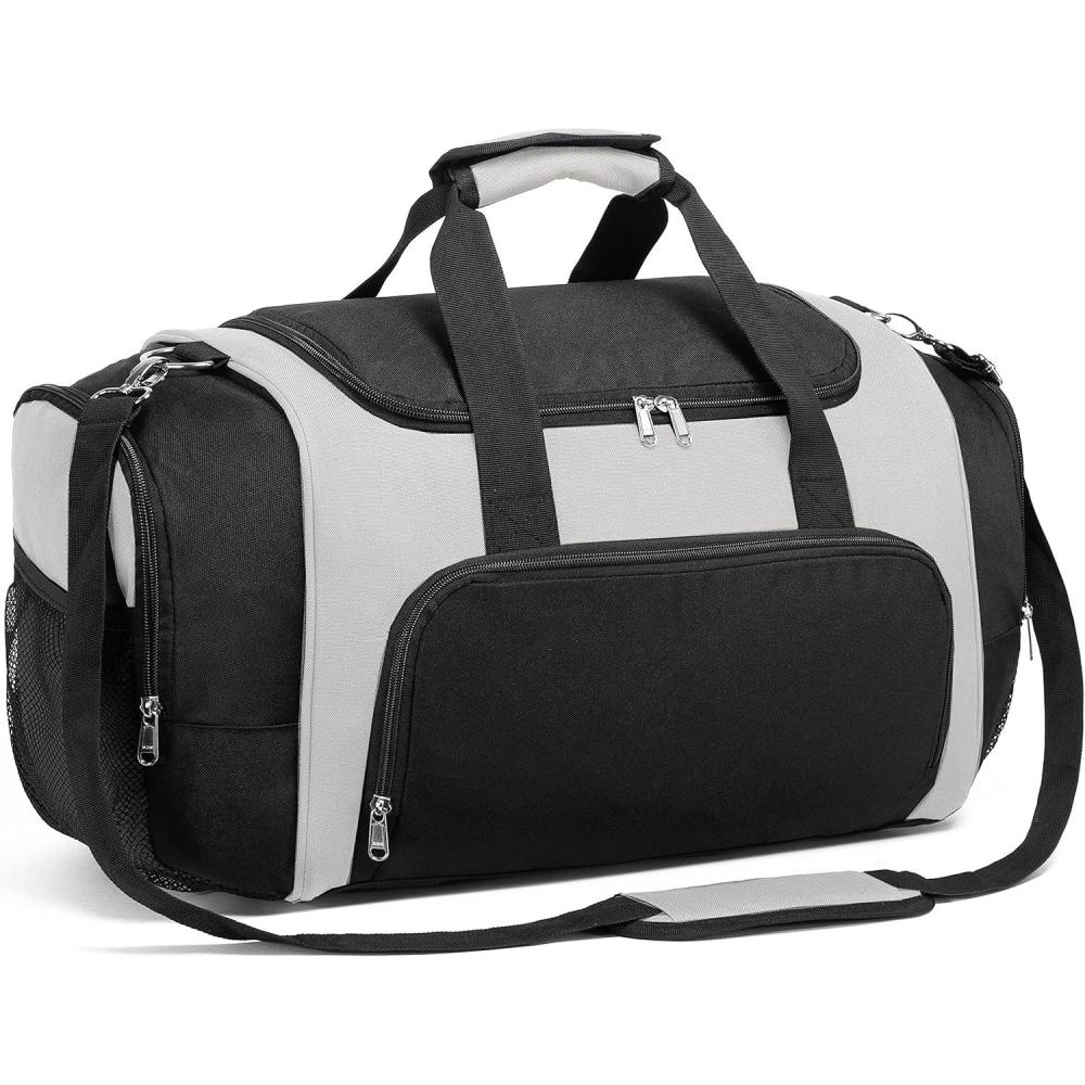 Small & lightweight gym bag: Size 21 x 10 x 12 inches, weight: 17oz / 483g. The capacity of the sports duffle bag is about 40L, it is roomy enough to store your clothes, toiletries, accessories and other items you need for sports or short trips, all the pockets helped keep things organized