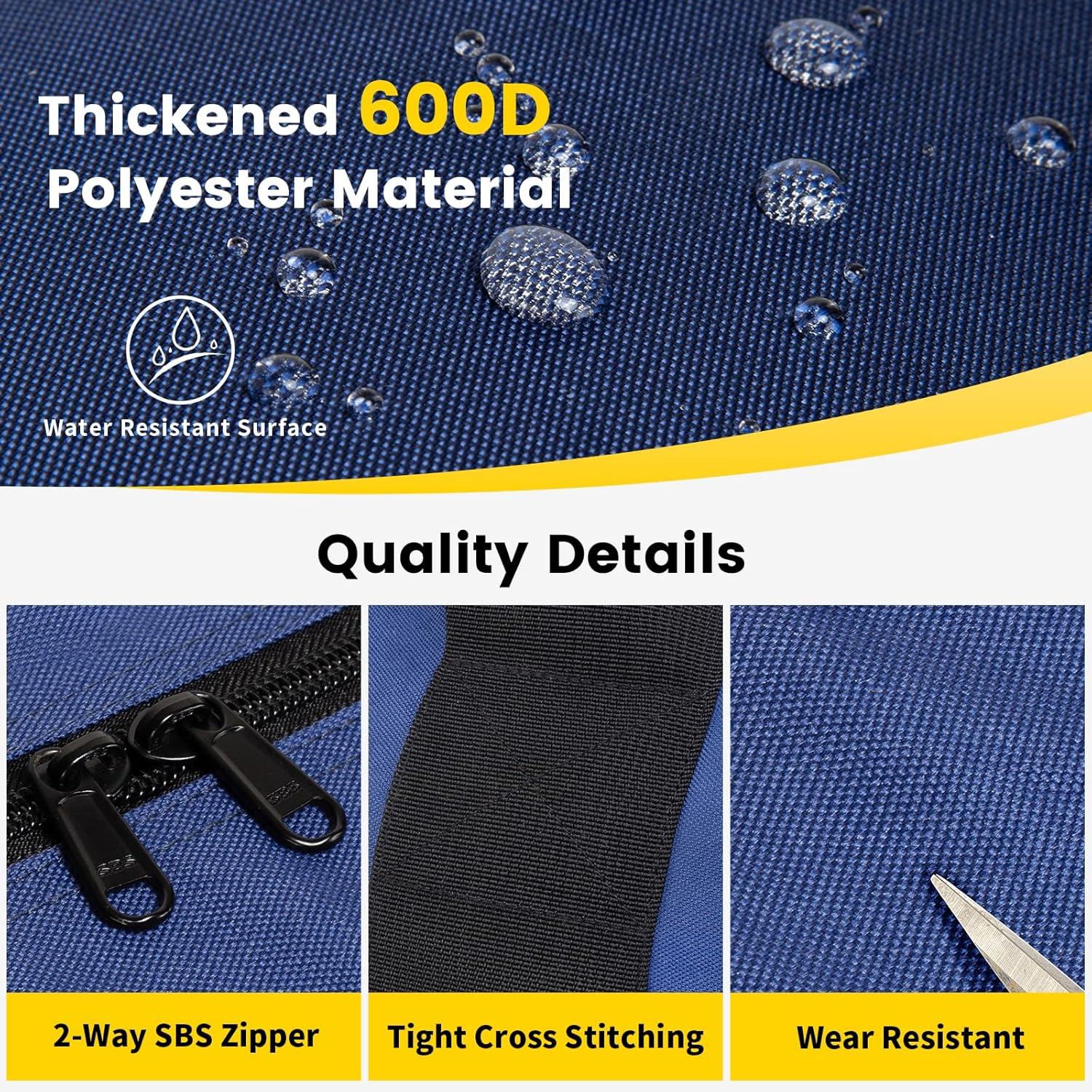 Quality Material & SBS Zippers: Made by thickened smell-less 600D polyester material, which is anti-tear and wear-resistant, it's durable and heavy-duty for long time use; Also, it has a 2-way smooth SBS zipper with a keyhole, it can be used with locks to improve the safety of your items