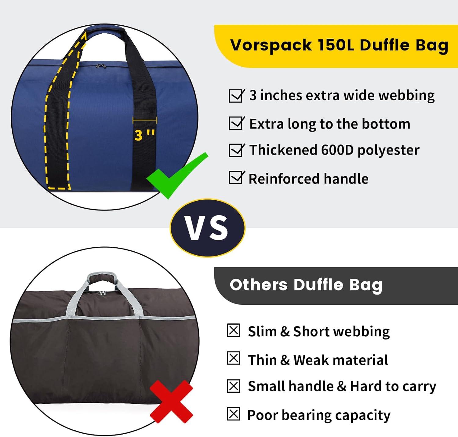 Vorspack Extra Large Duffle Bag for Travel – 100L Duffel Bag for Men Gear Bag for Storage Foldable Weekender Bag for Overnight Camping – Black(Blue)