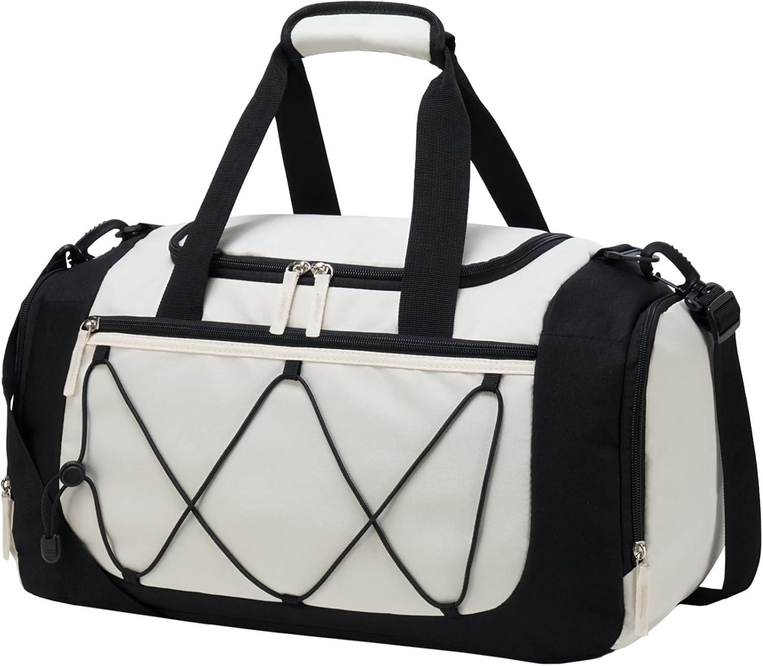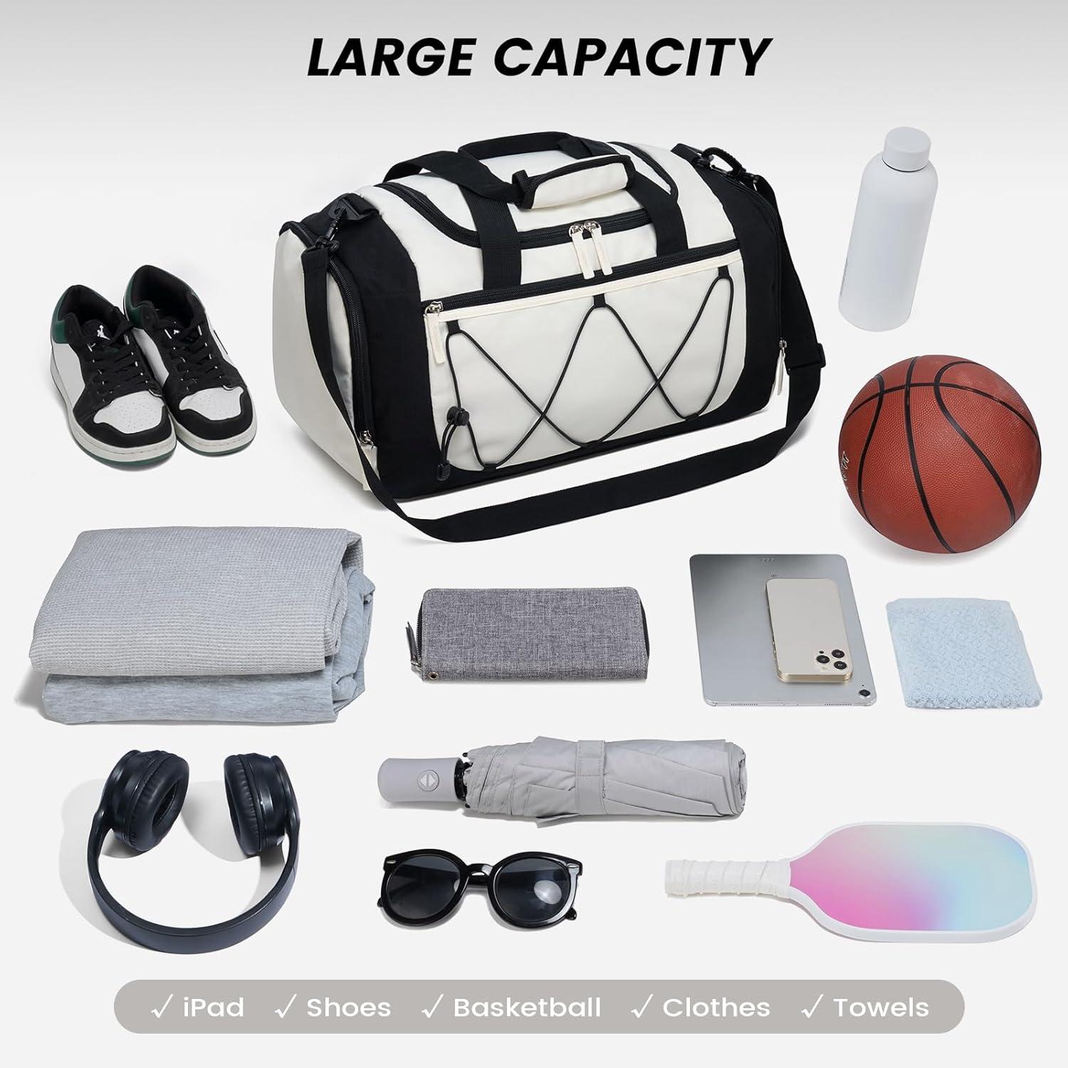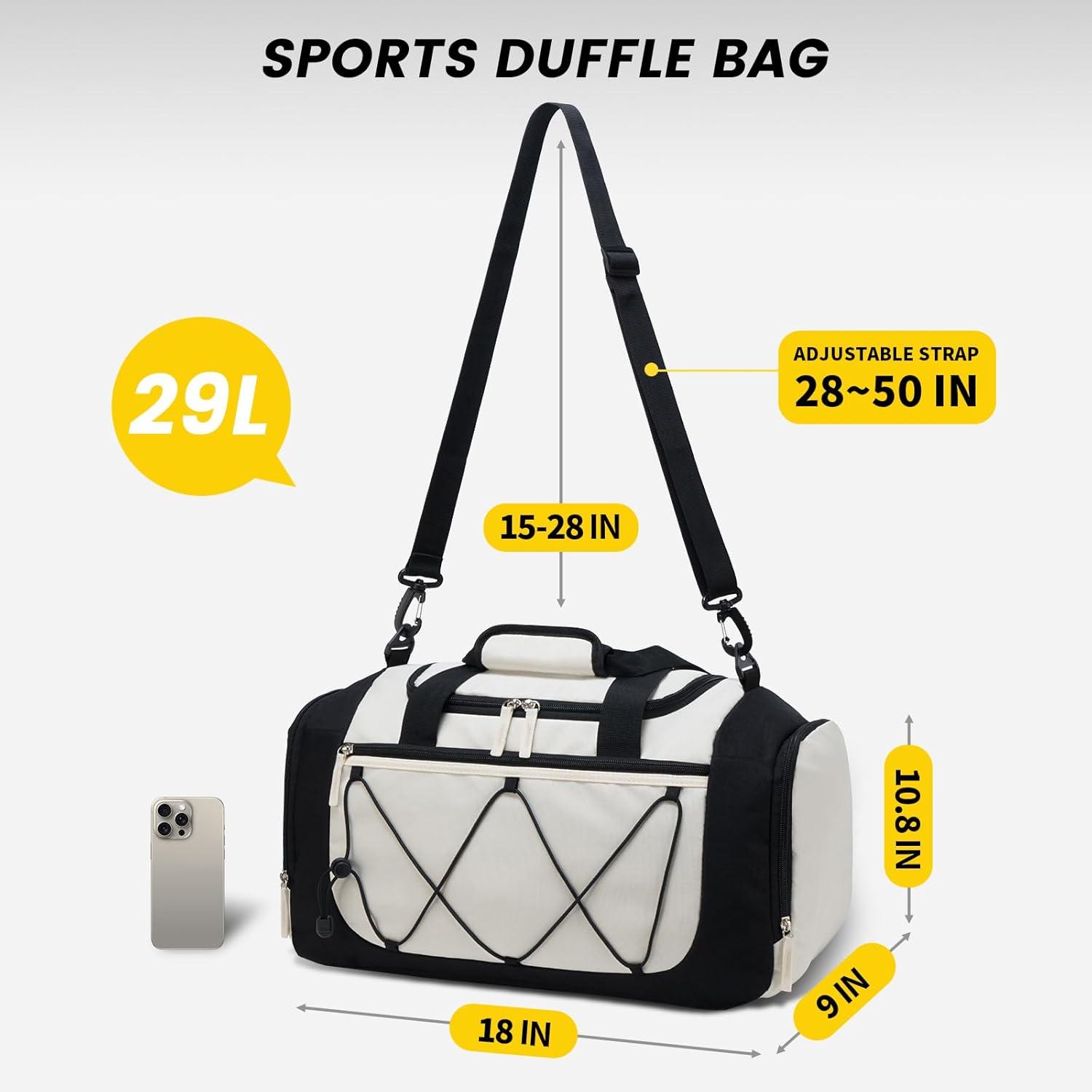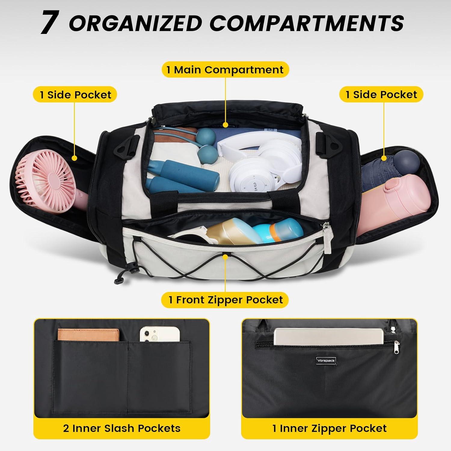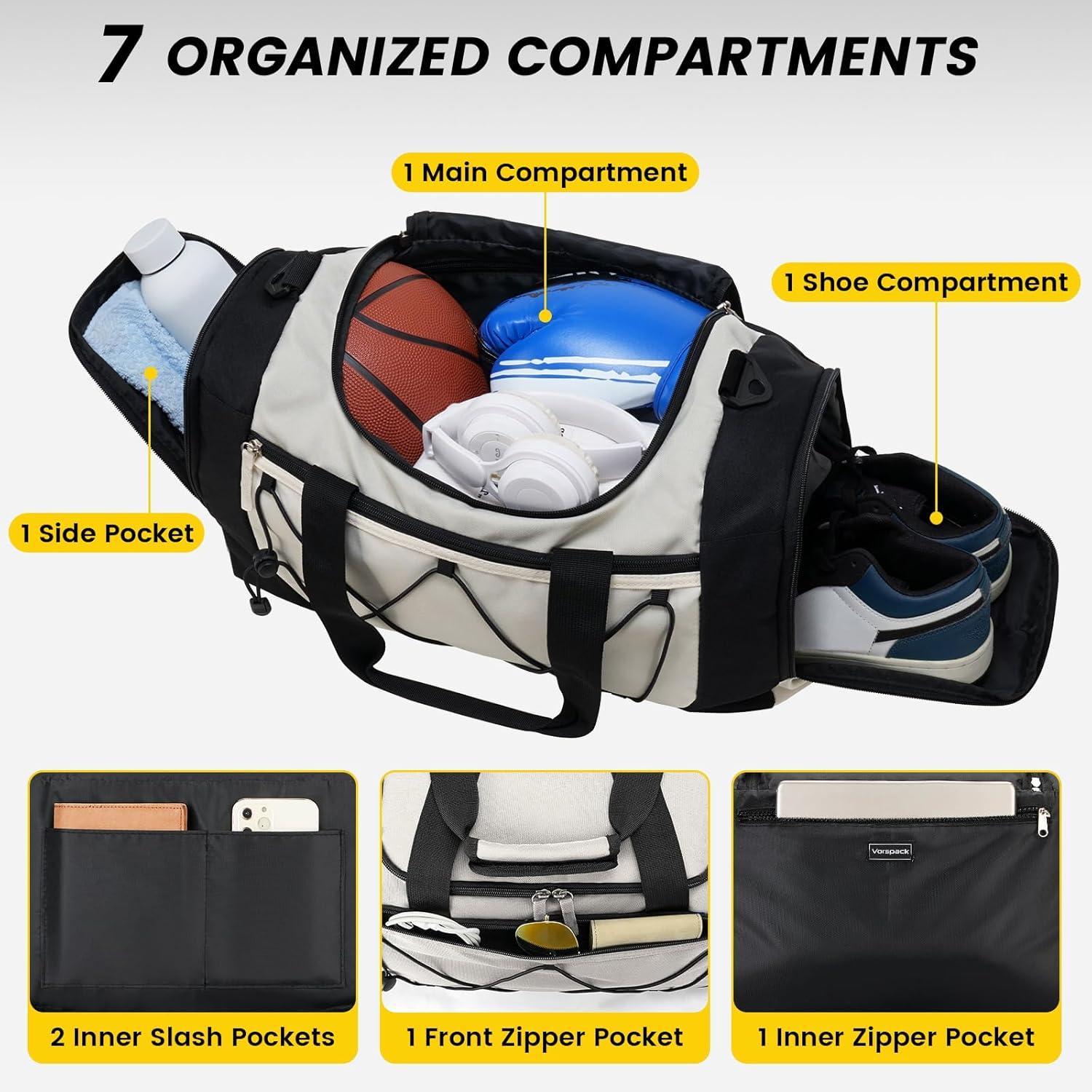 Vorspack Gym Bag for Men – 21 Inches Duffle Bag for Travel Lightweight Duffel Bag with Shoe Compartment Personal Item Travel Bag Weekender Bag for Travel Sports Gym – Black(Beige)