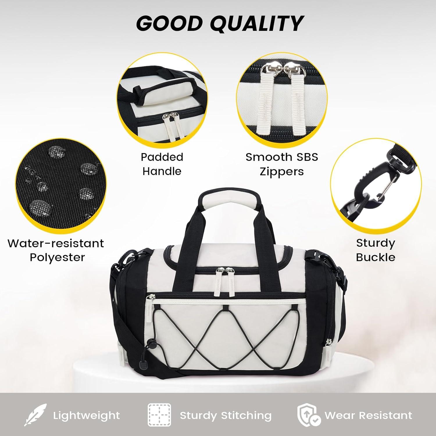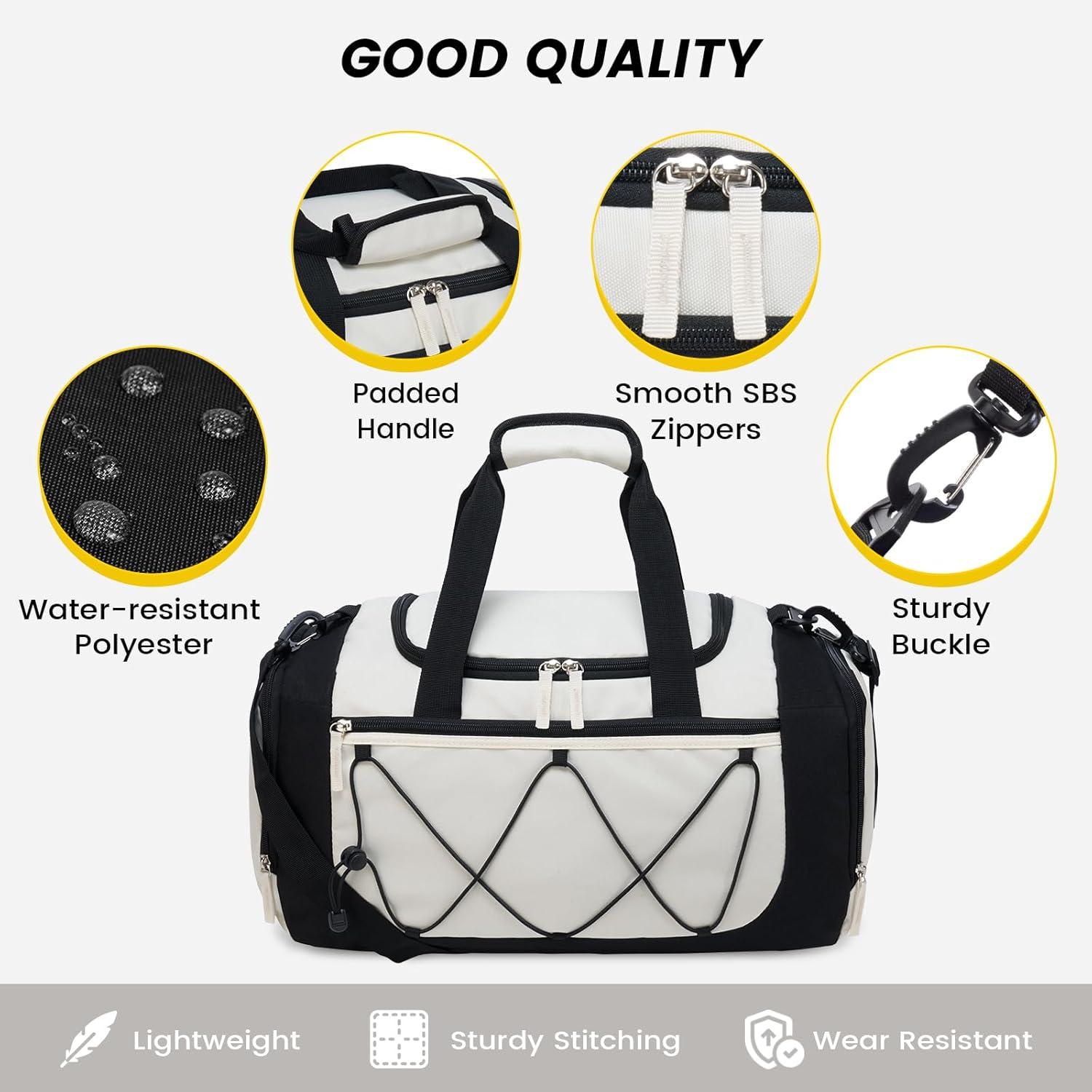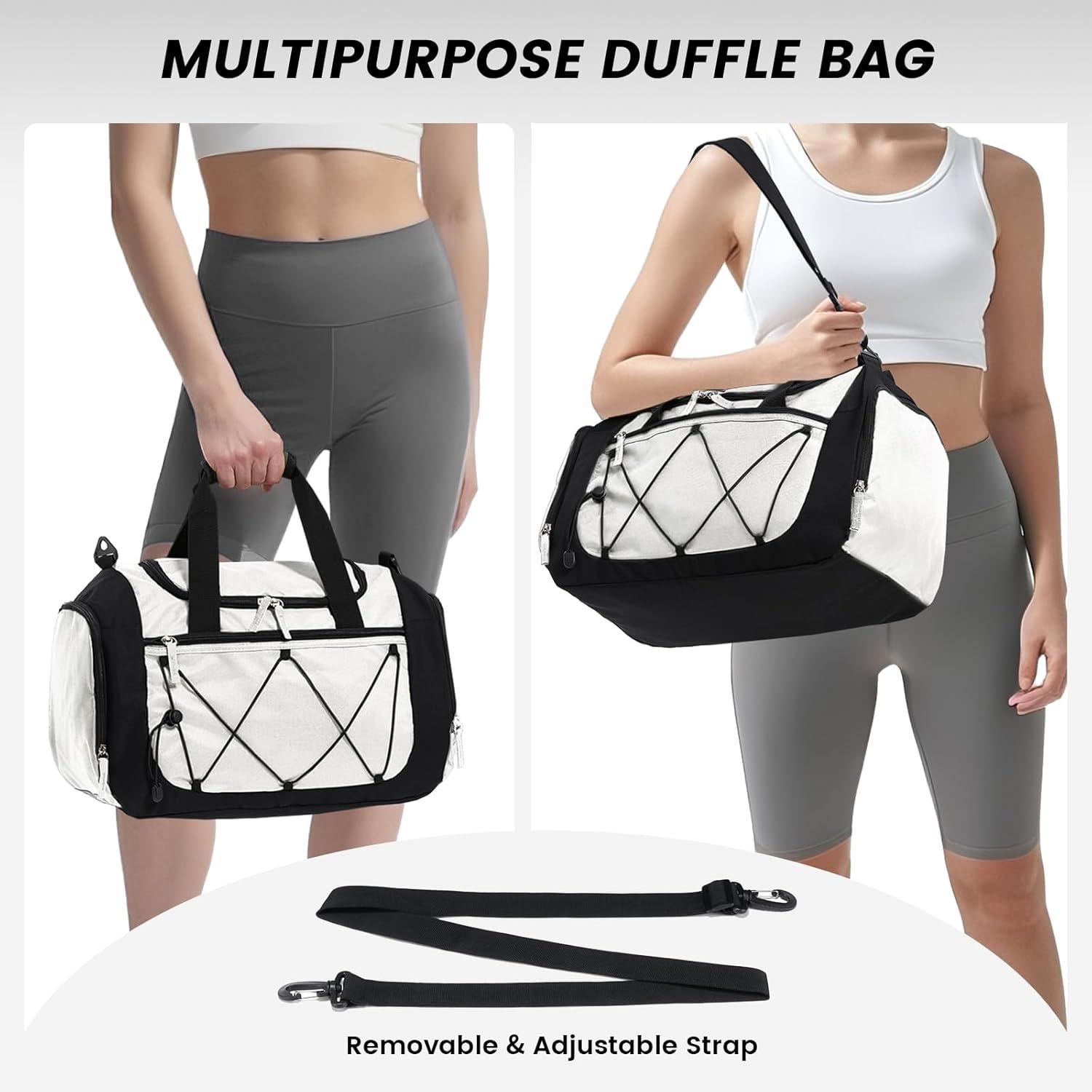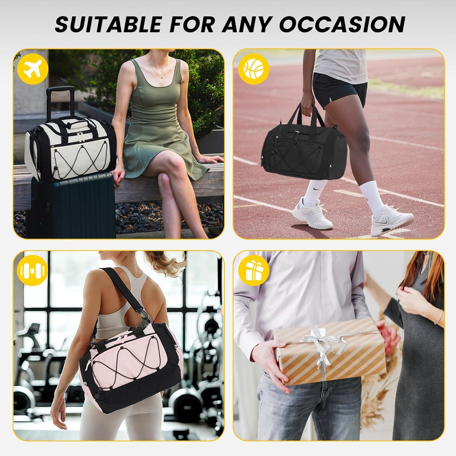 Multipurpose gym bags: With the perfect size and nice outlook, these duffle bags can be your good partner for going to gym, sports, or on short trips. It could be as an overnight bag, workout bag, sports bag, carry on bag, personal item travel bag, yoga bag, or weekender bag