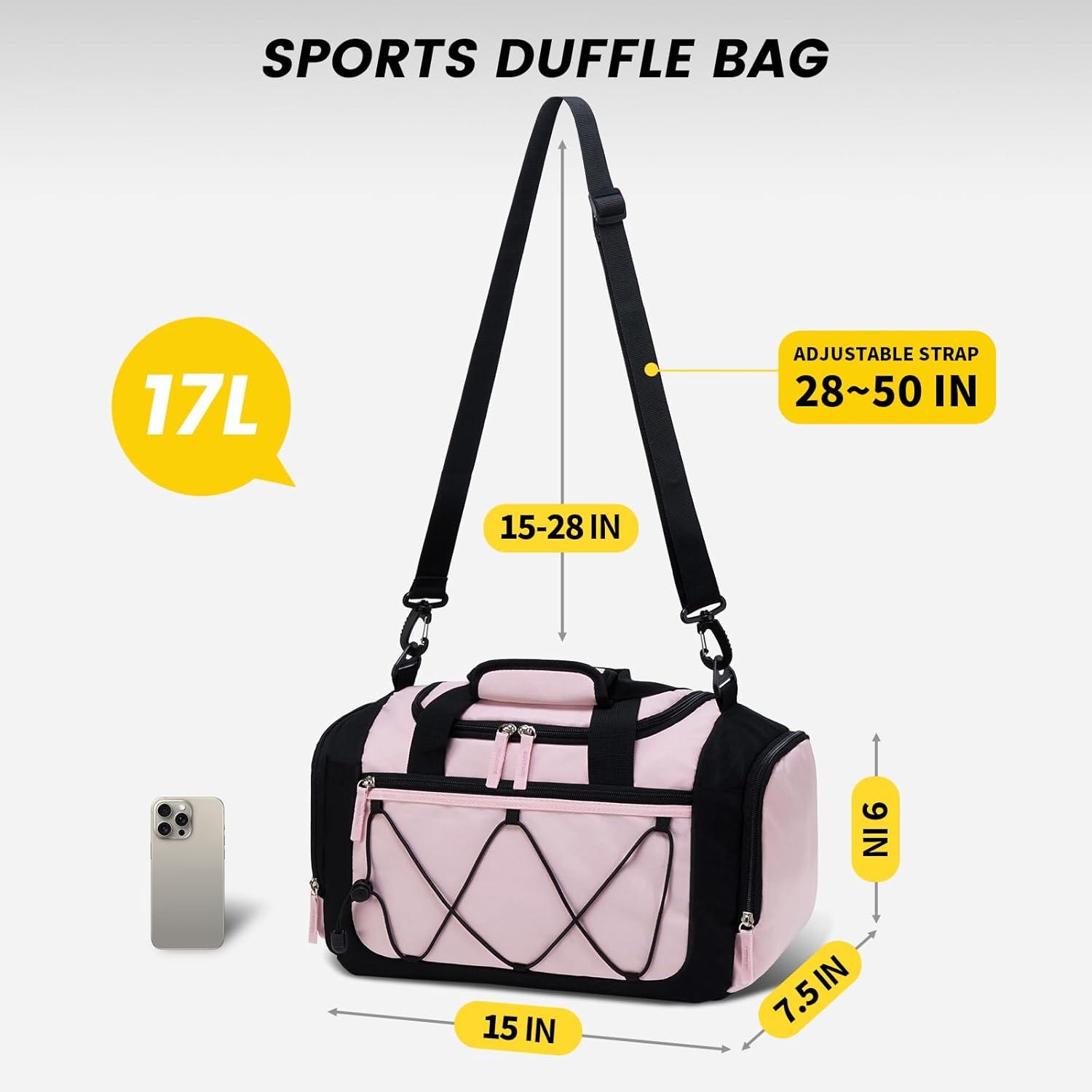 Vorspack Gym Bag for Men – 21 Inches Duffle Bag for Travel Lightweight Duffel Bag with Shoe Compartment Personal Item Travel Bag Weekender Bag for Travel Sports Gym – Black(Pink)