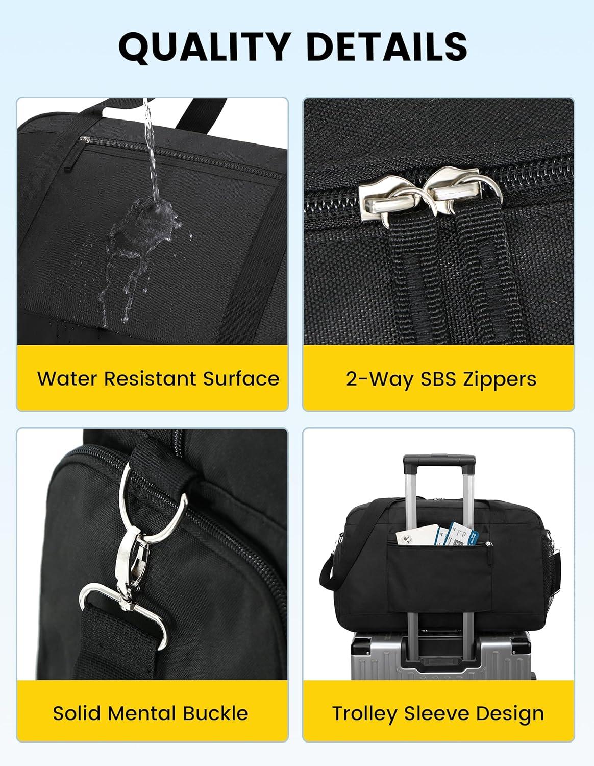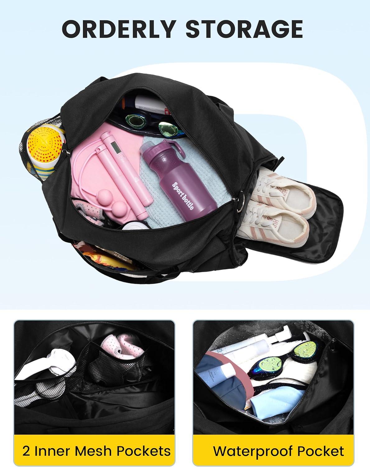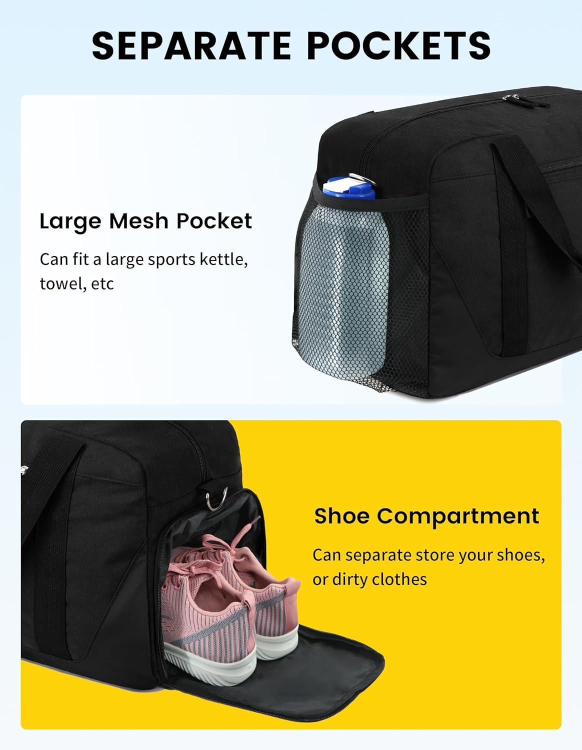 Vorspack Gym Bag for Women – 35L Duffle Bag for Travel with Wet Pocket Lightweight Duffel Bag with Shoe Compartment Weekender Bag Overnight Bag for Sports Gym Trip – Black