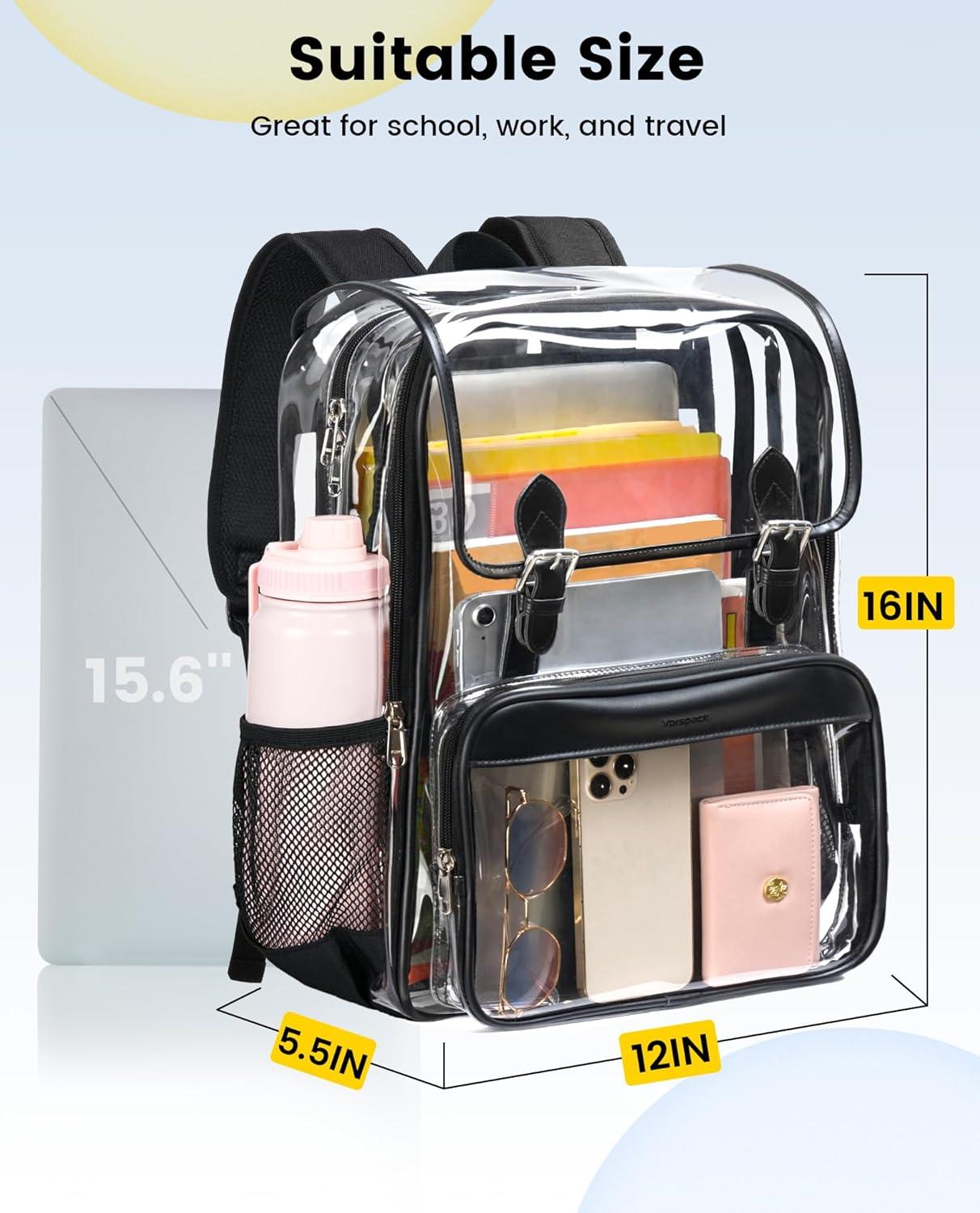Versatile usage: This Vorspack heavy-duty clear backpack is stylish and practical, suitable for girls and women. It works great as a college bookbag, travel backpack, clear work tote, personal item bag, or daily backpack – ideal for the back-to-school season or as a birthday choice