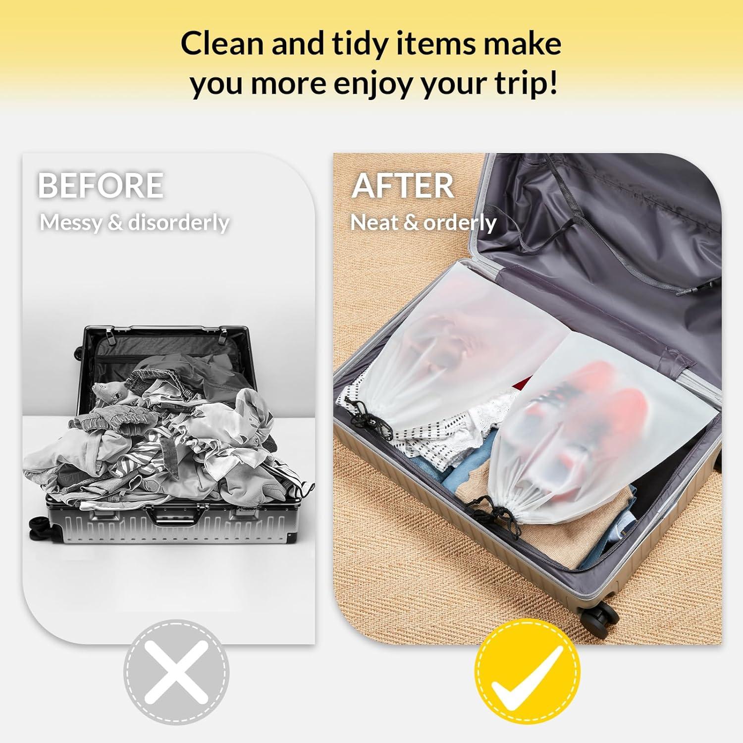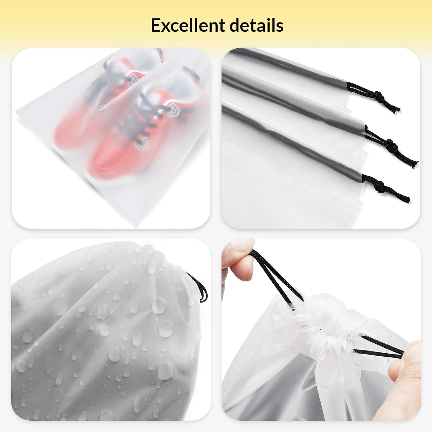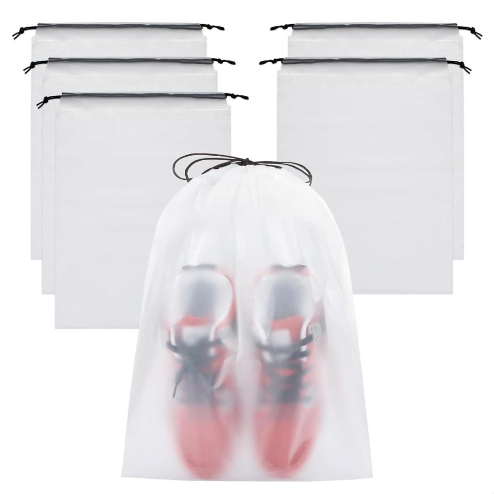 Vorspack Shoe Bags for Travel – 6 Pcs Extra Large Transparent Drawstring Backpack Travel Shoe Bag Clear Drawstring Bag Large Shoe Organizer with Rope Travel Essentials for Men Women(X-Large)