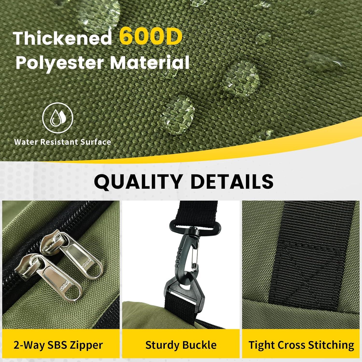 Quality duffle bag: The small duffle bag is made of quality 600D water-resistant polyester that lasts long and can protect your items from splashed water. The solid plastic steel hook and the reinforced cross stitching make the travel bag more heavy-duty. To ease the stress, the handle and the adjustable strap of the gym bag for women are padded securely. The sturdy SBS zippers can slide smoothly and easily
