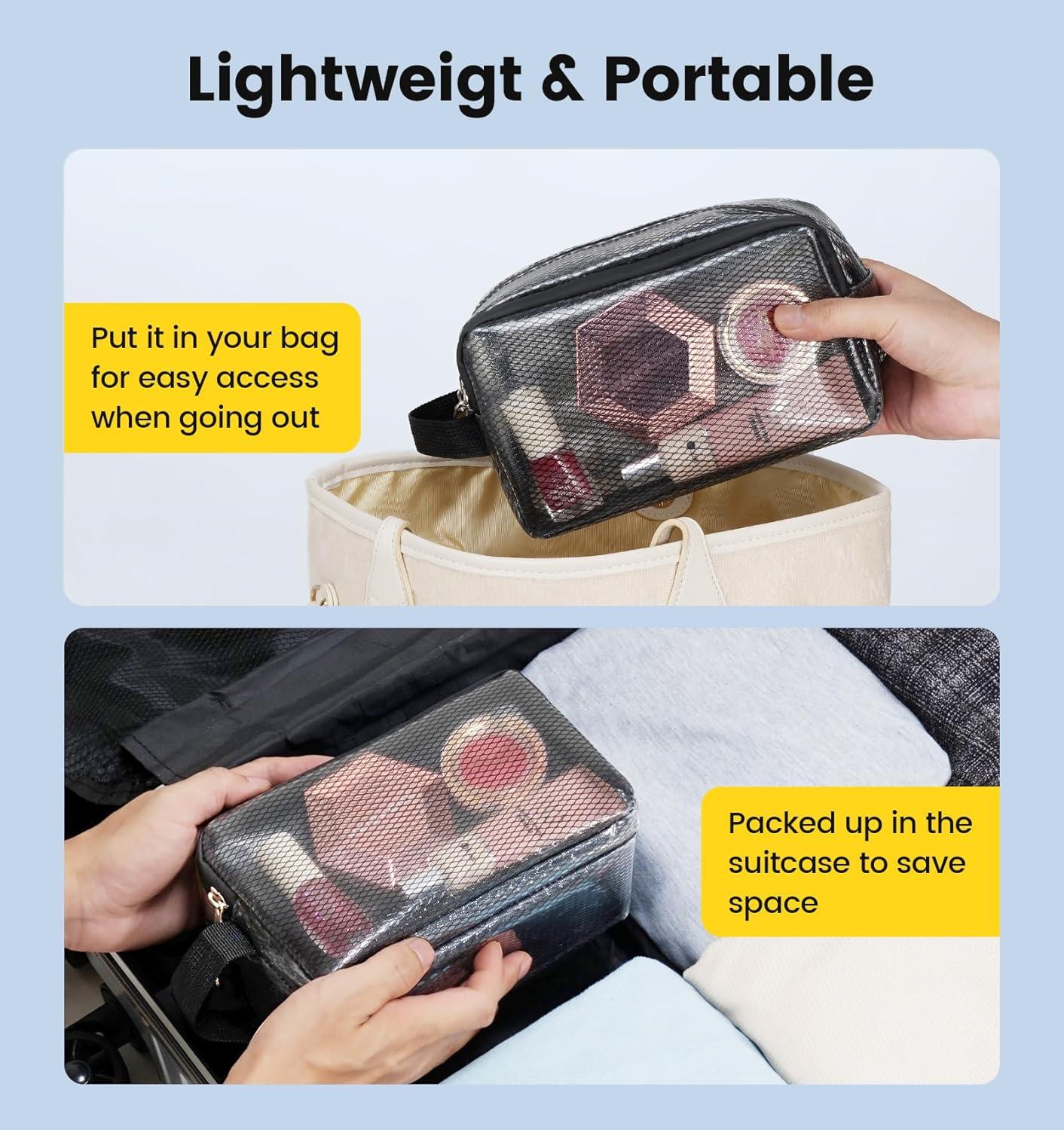 Convenient & Travel-Friendly Design: This clear toiletry bag features a hanging hook for easy access in bathrooms, a comfortable carry handle, and smooth zippers for quick opening. Compact yet spacious, it fits perfectly in suitcases, backpacks, and duffel bags