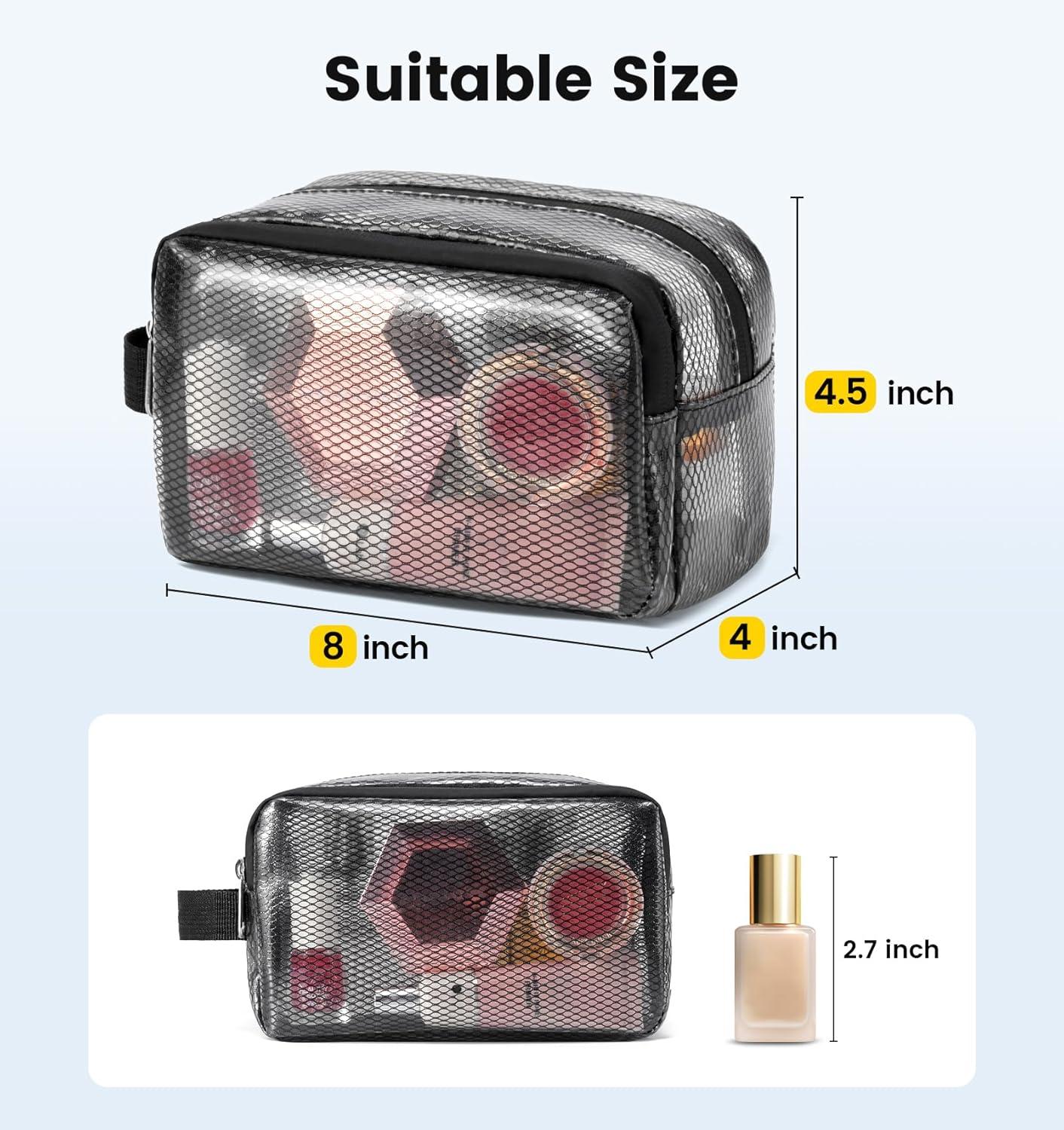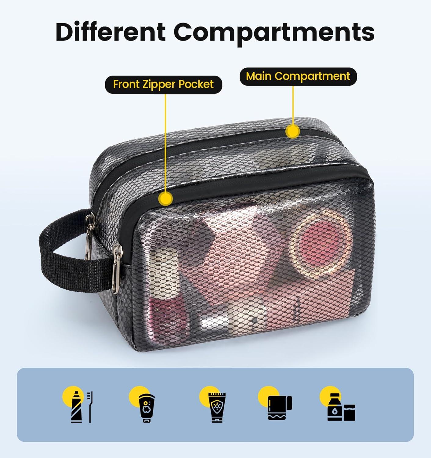 Spacious & Organized Travel Toiletry Bag: Measuring 8 x 4 x 4.5 inches, this small toiletry bag for women and men features a roomy main compartment perfect for travel-sized toiletries, electric shavers, makeup brushes, and more. And with a front zipper pocket, it's the ultimate organizer bag for toiletries that keeps all your essentials neatly separated