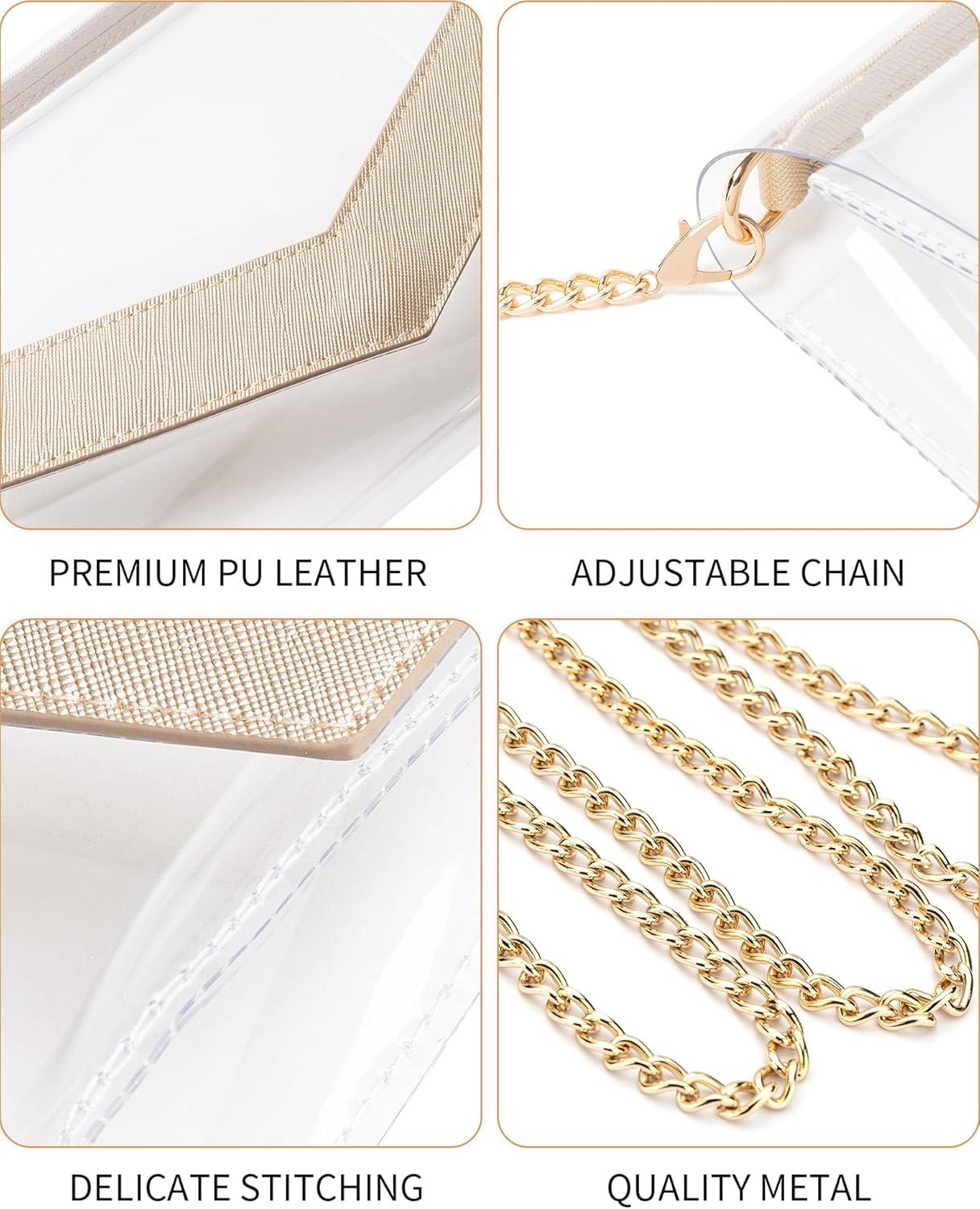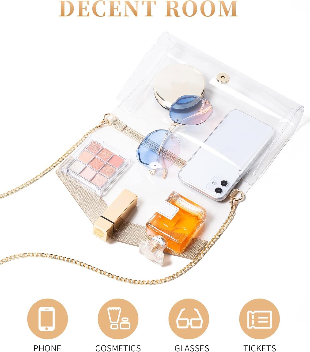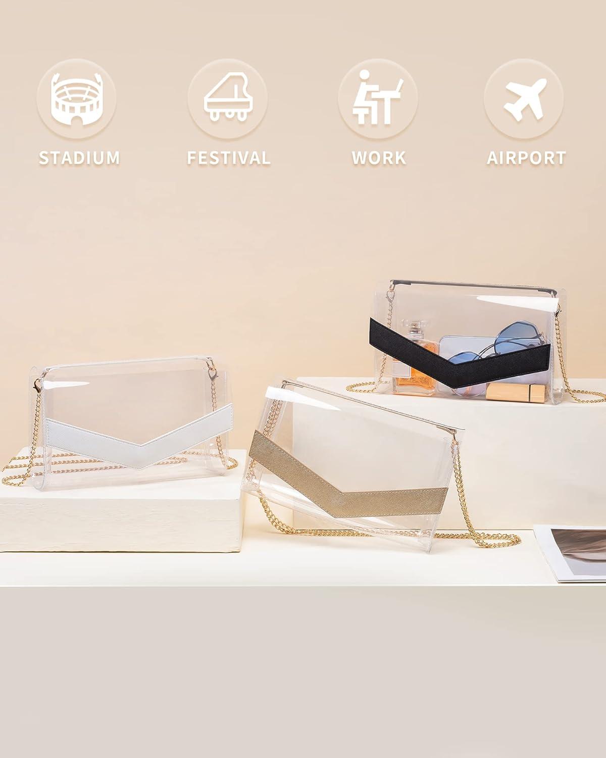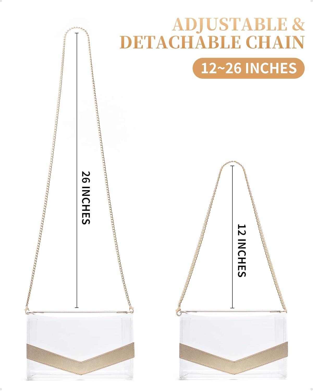 Adjustable & detachable chain: The chain strap of the clear purse is detachable and adjustable which is long enough to wear cross body, you can adjust the chain strap to any size according to your body shape. It also can be used as shoulder bag, crossbody bag, or removed to be brief handbag