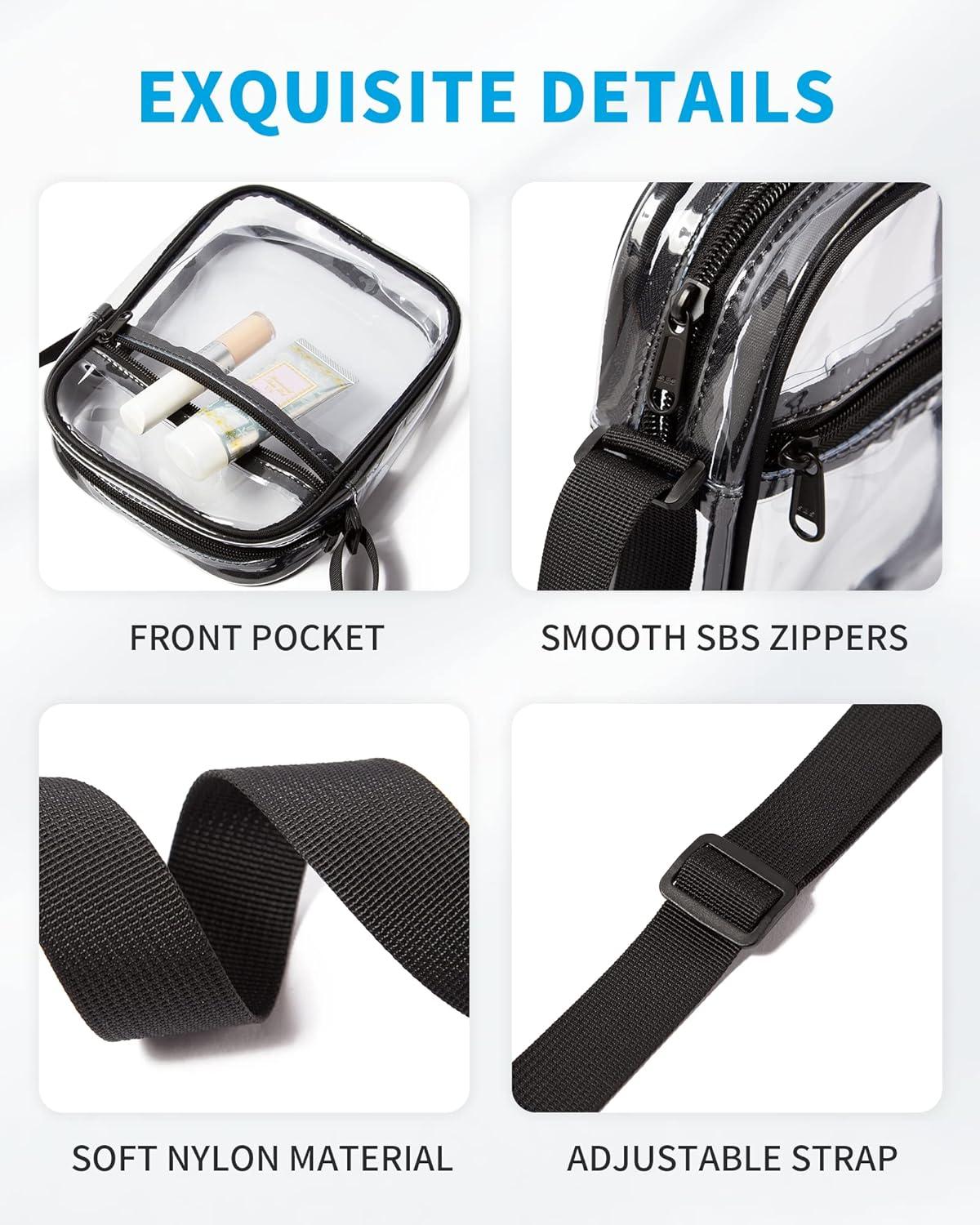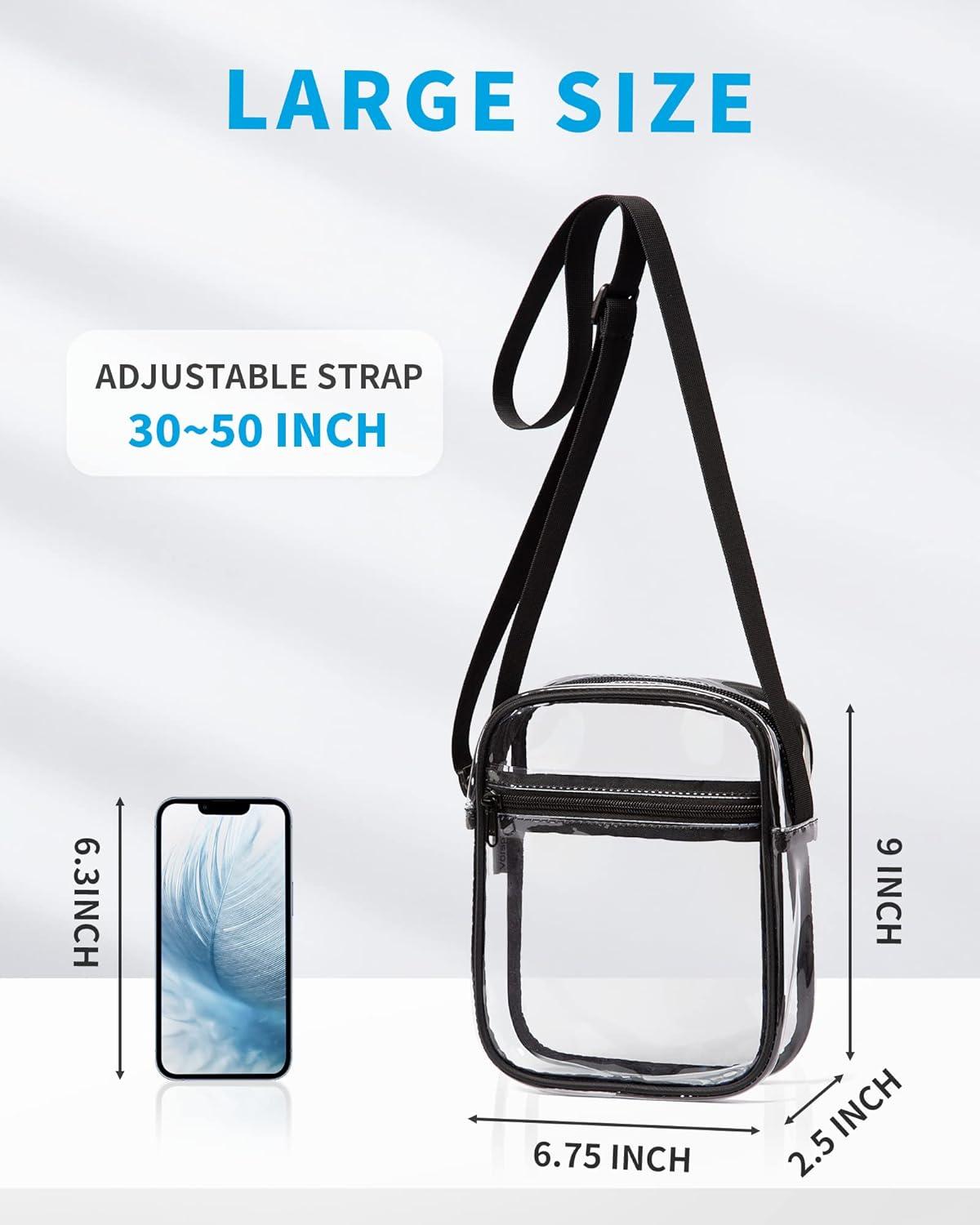 Quality thicker PVC material: Our clear crossbody bag is made of 0.5 mm PVC material for a longer service life makes it durable and sturdy, it will not fracture even in freezing temperatures and will protect your things from splashing water