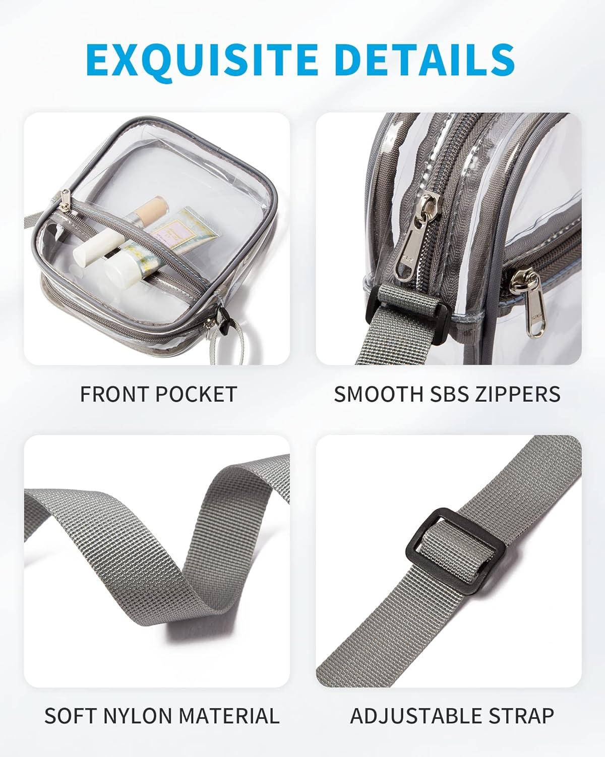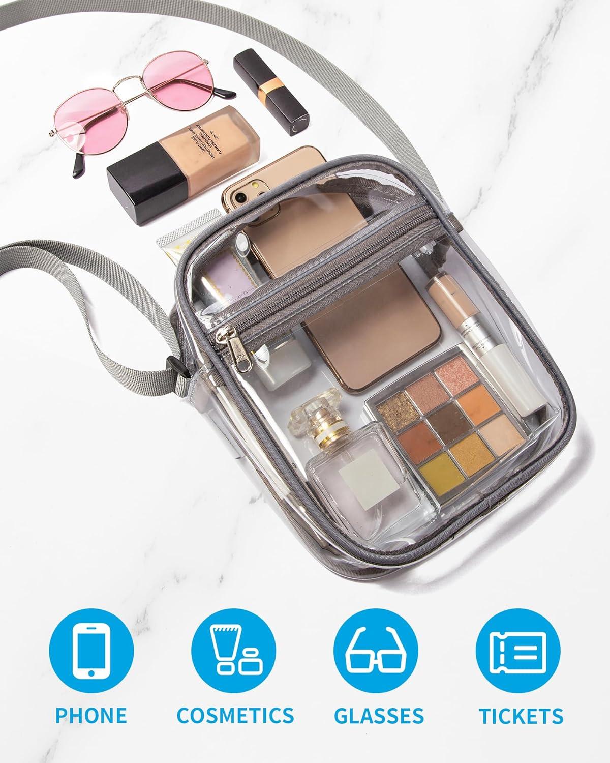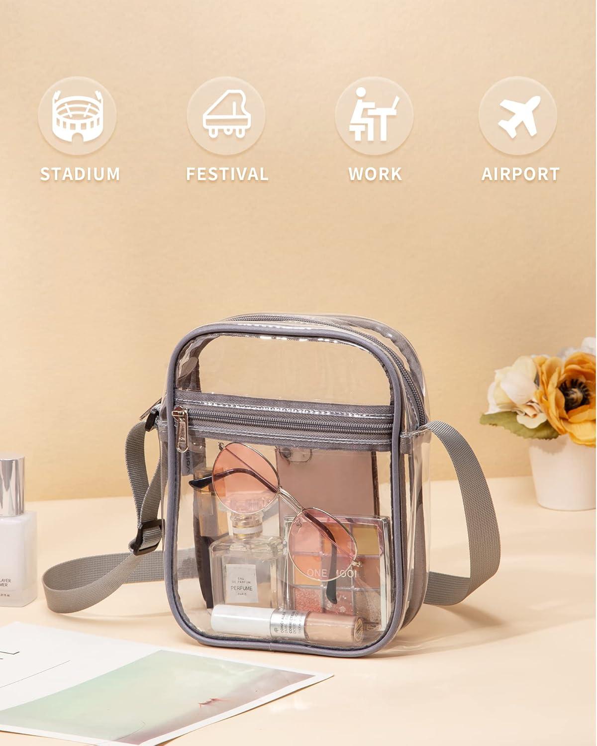Vorspack Stadium Approved PVC Purse – Clear Crossbody Bag with Front Pocket for Concerts, Sports, Festivals(Grey)