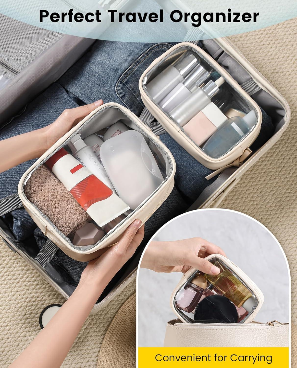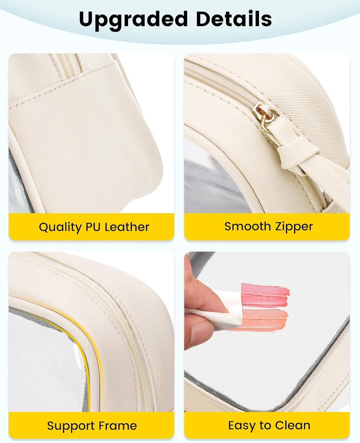 Clear side for easy location: Both sides of the travel makeup bag are made of PVC material, making it easier to spot your items and get through security checks quickly. Also, the PVC surface is easy to clean