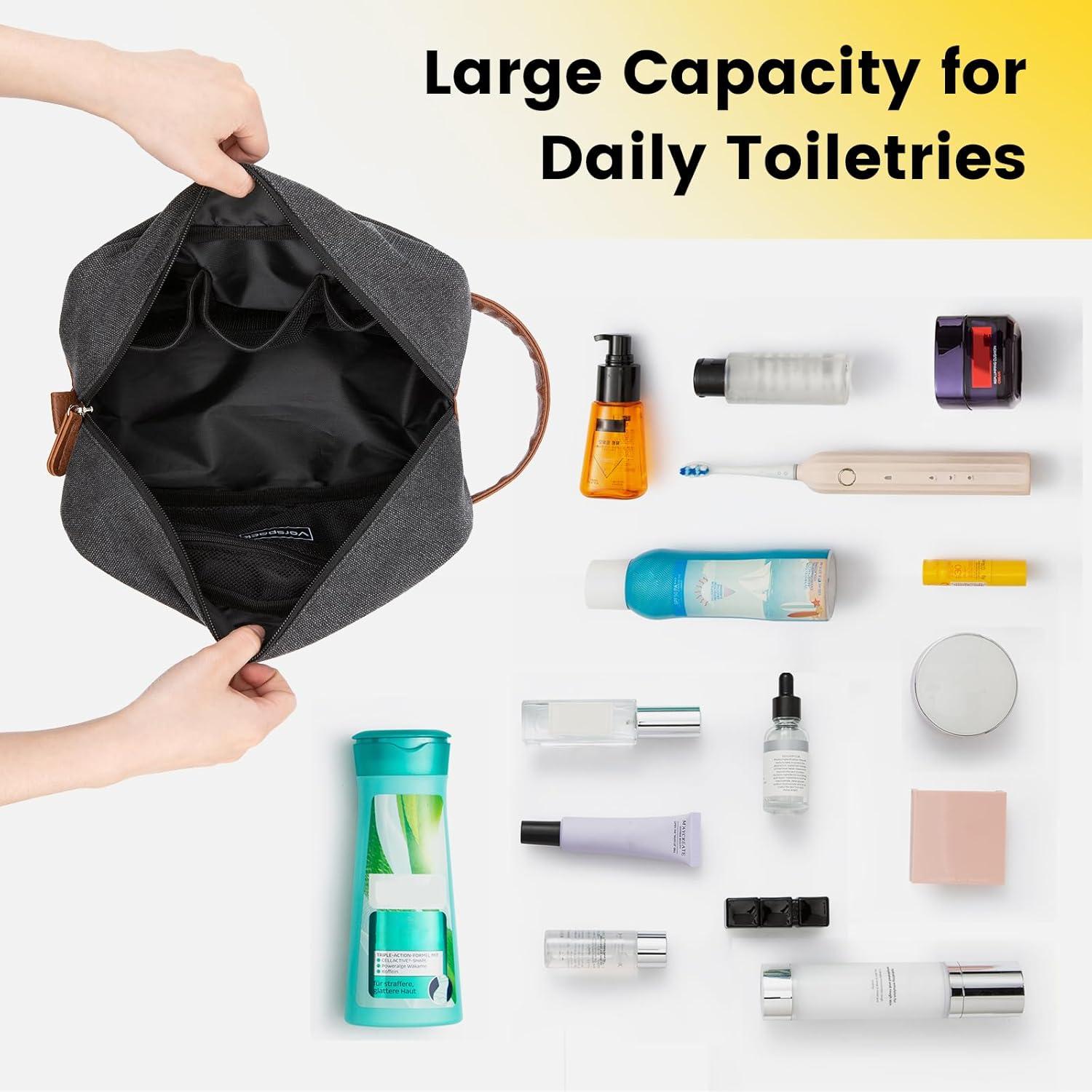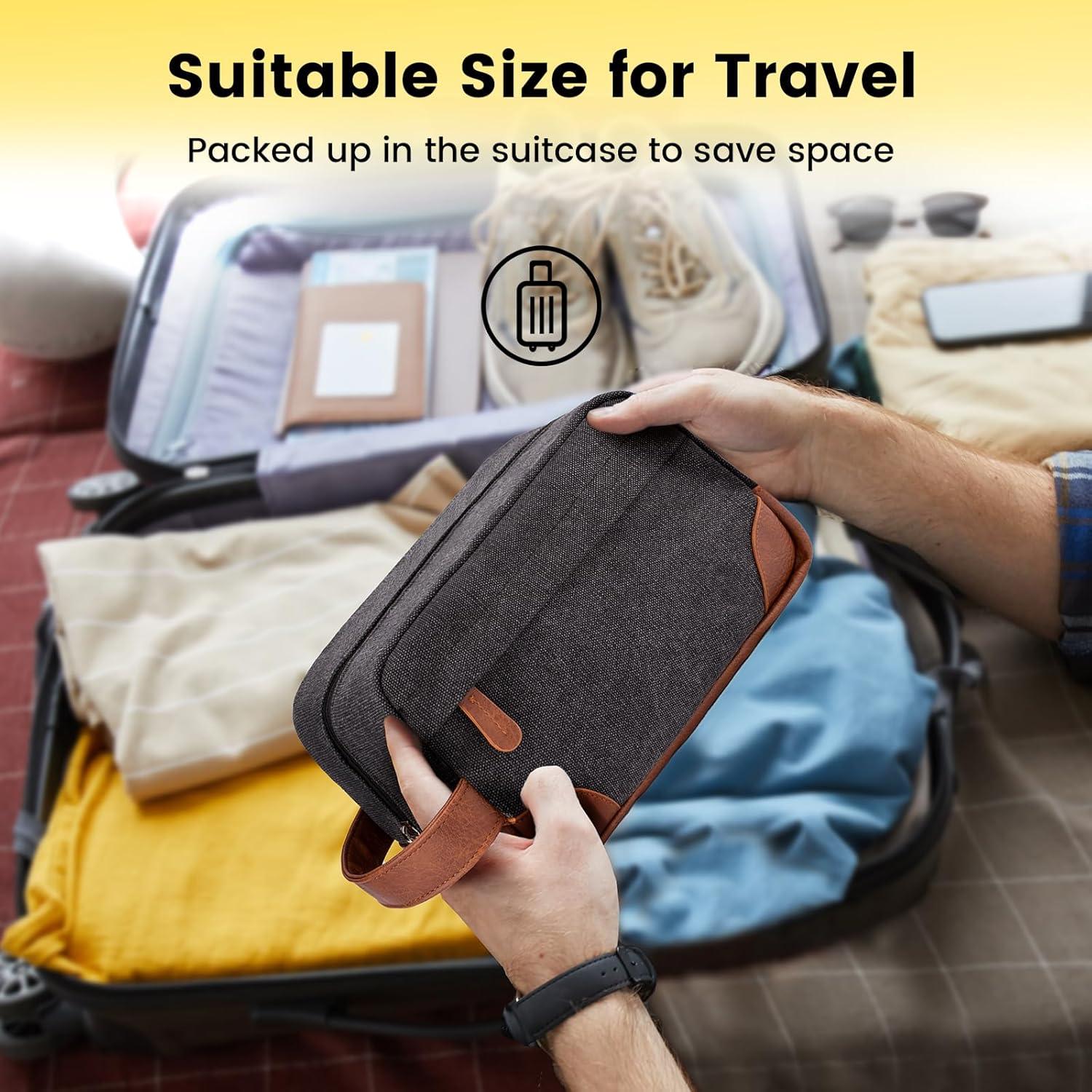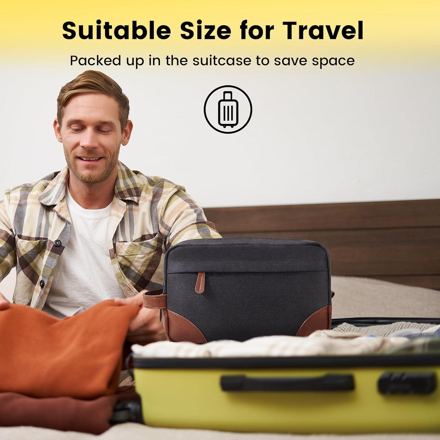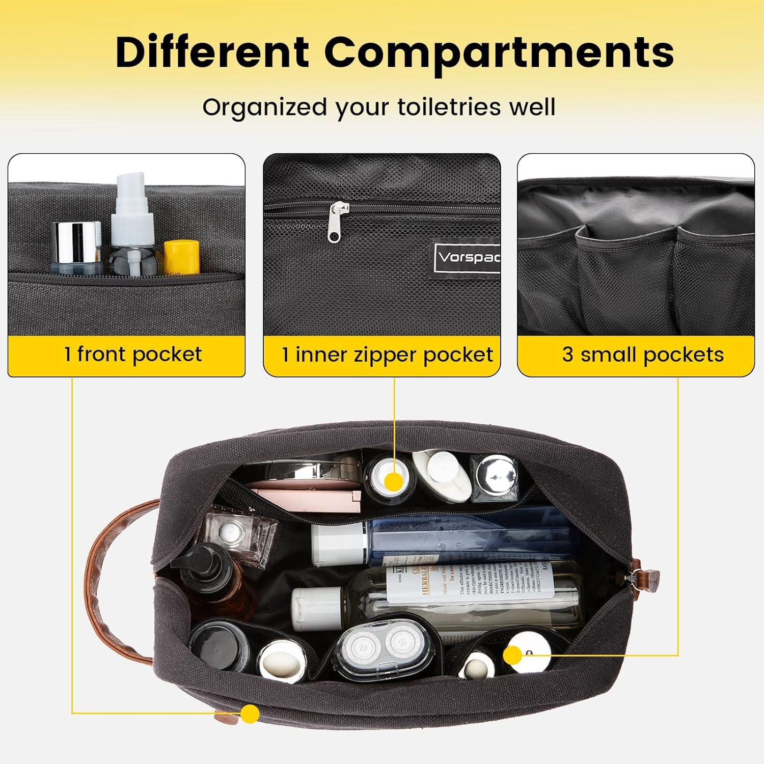Vorspack Travel Toiletry Bag – Hanging Toiletry Bag for Men Water Resistant Canvas Shaving Bag with Large Capacity for Travel – Black(Dark Grey)