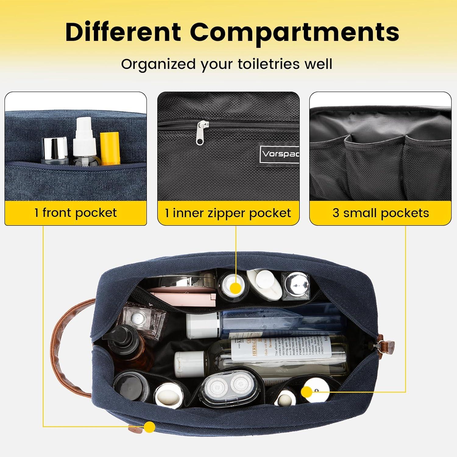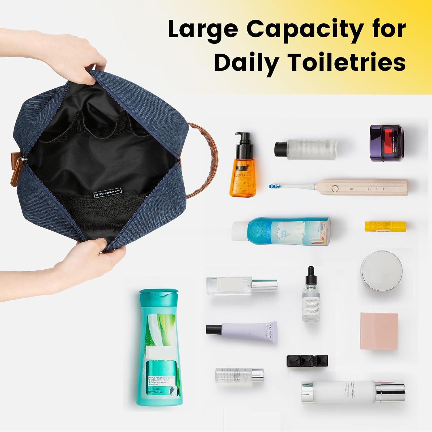 Vorspack Travel Toiletry Bag – Hanging Toiletry Bag for Men Water Resistant Canvas Shaving Bag with Large Capacity for Travel – Black(Navy Blue)